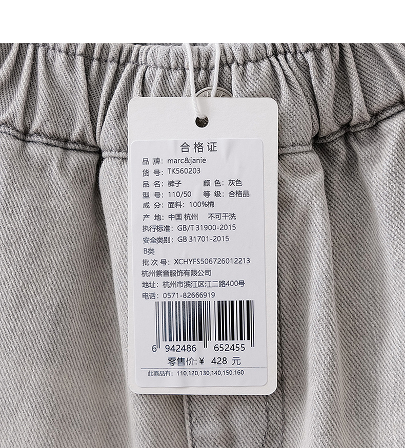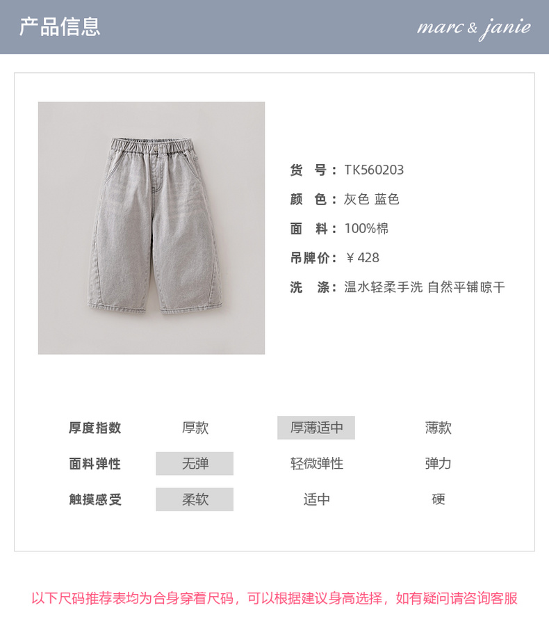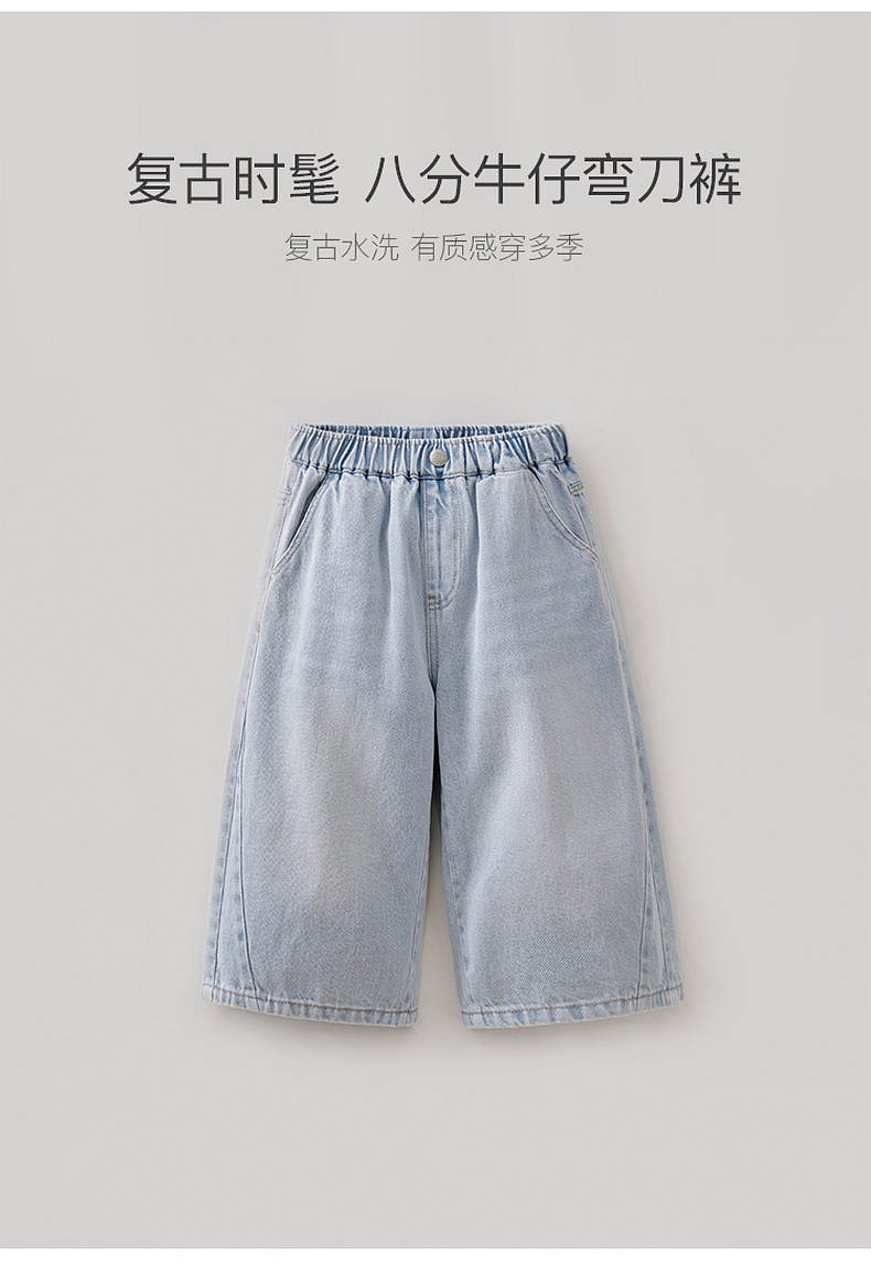 马克珍妮复古时髦女童八分牛仔弯刀裤2026年春装新款560203