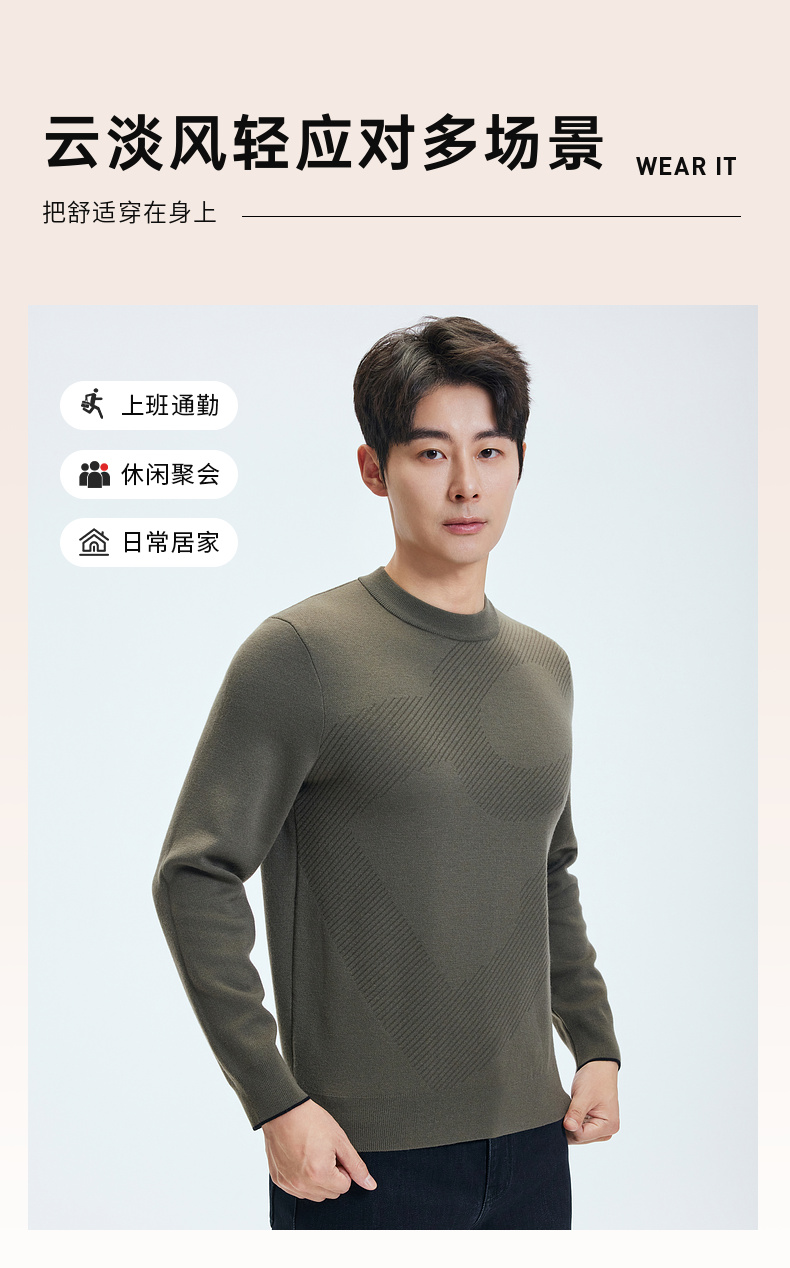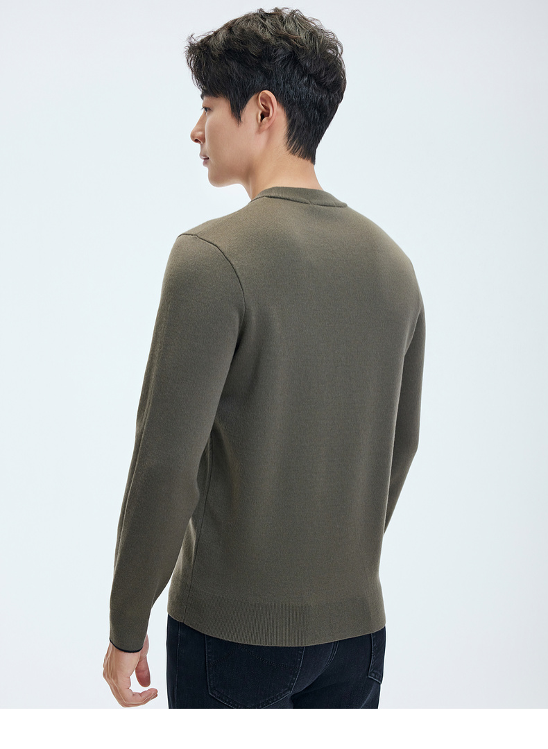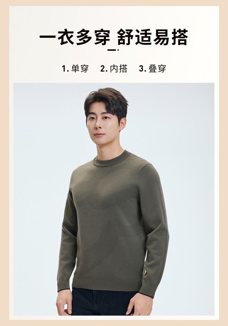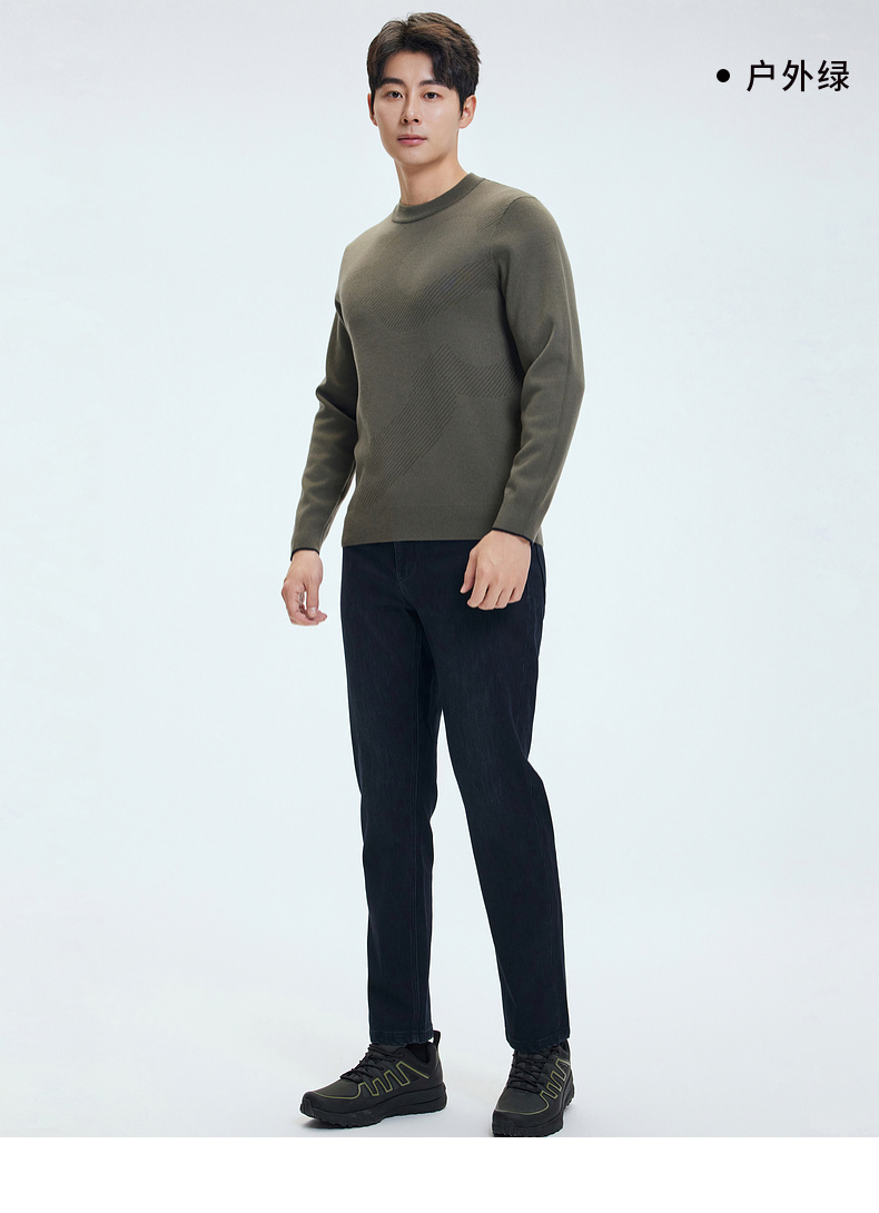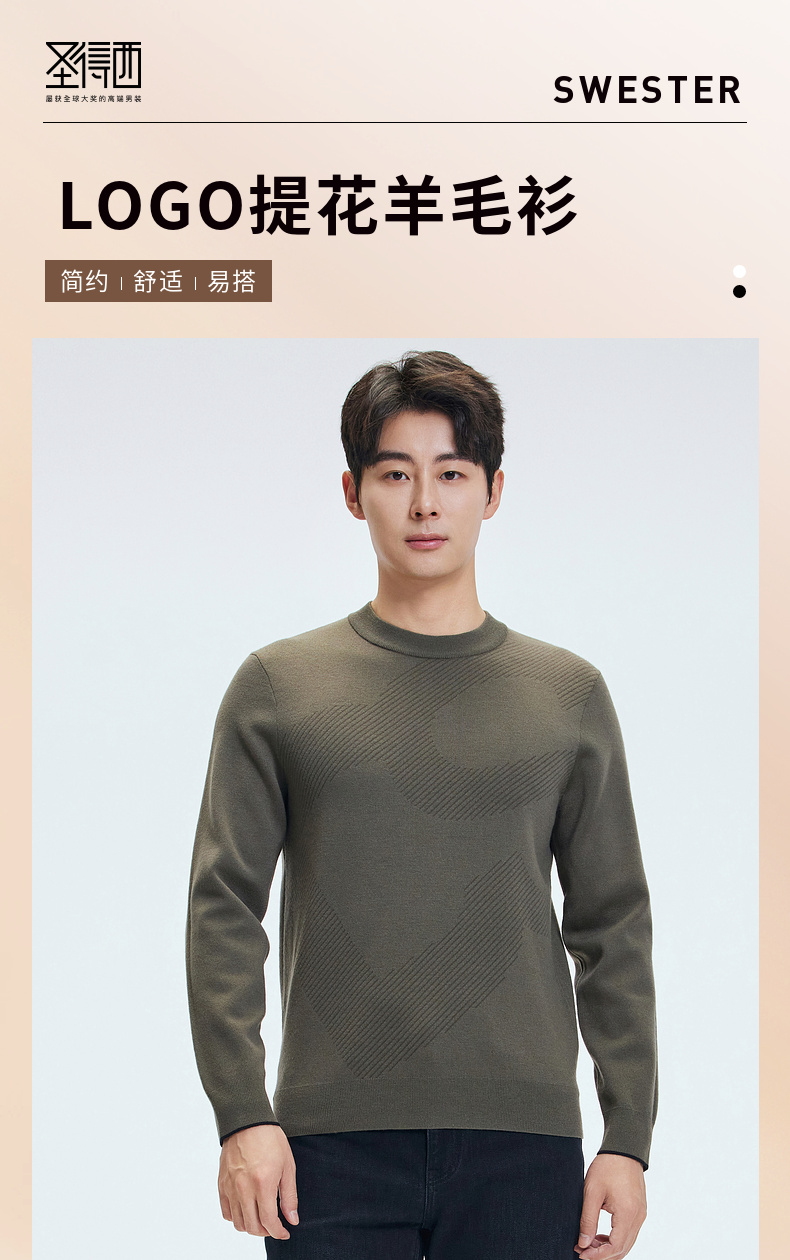 【含绵羊毛】圣得西男士亲肤柔软羊毛混纺高密针织衫2025秋季新款百搭舒适毛衣
