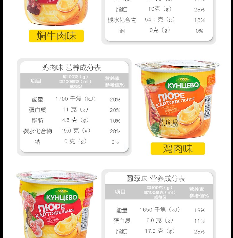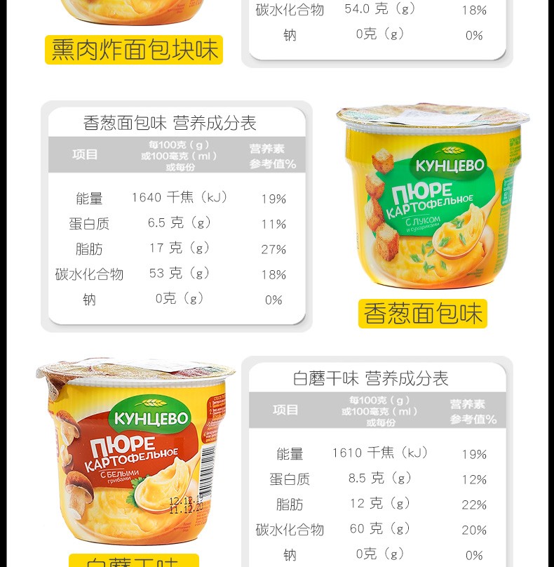俄罗斯昆采沃牌美味土豆泥5盒冲泡即食