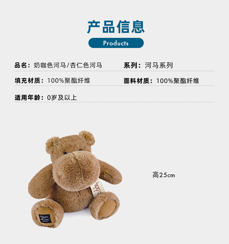 DOUDOU 奶咖杏仁色河马-25cm玩偶