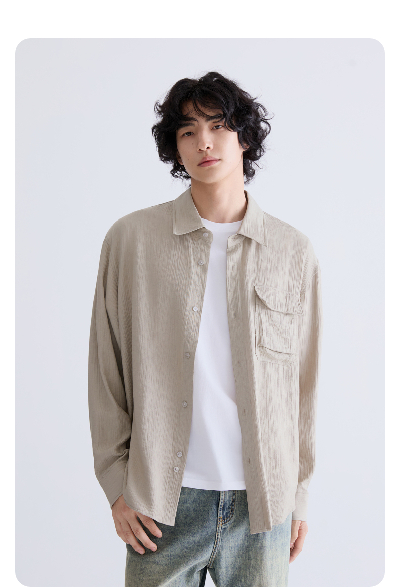 GXG男装 浅卡其肌理面料宽松休闲长袖衬衫25年春季热卖G25X031032