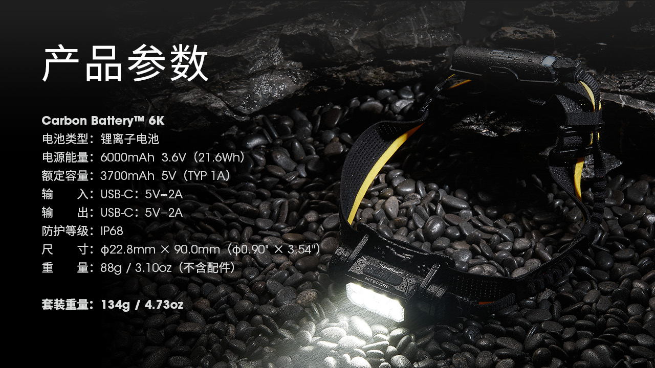 NITECORE奈特科尔Carbon_Battery_6K头灯补充电池电源21700充电宝6000毫安