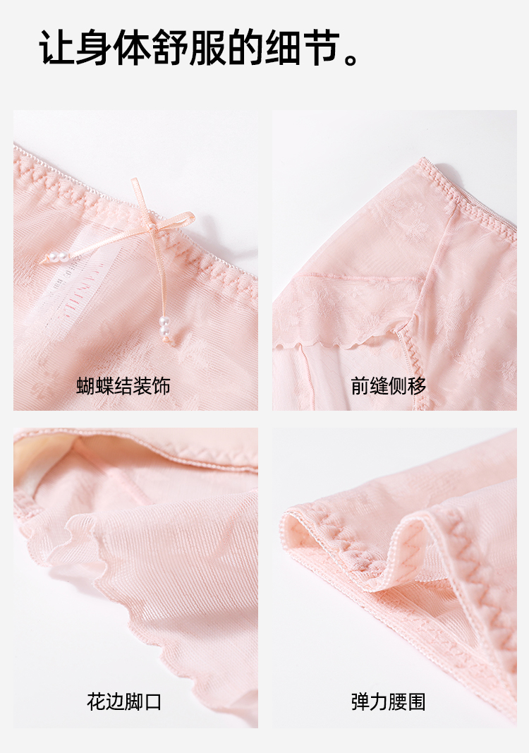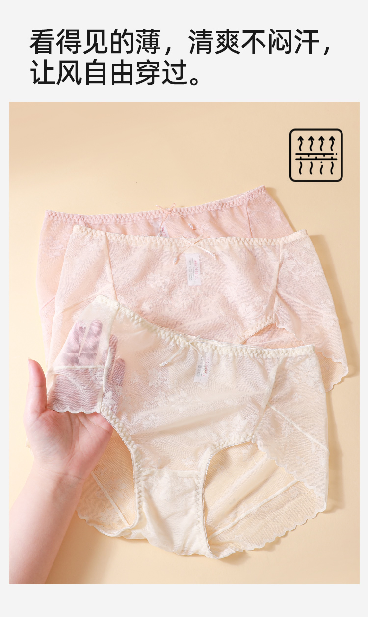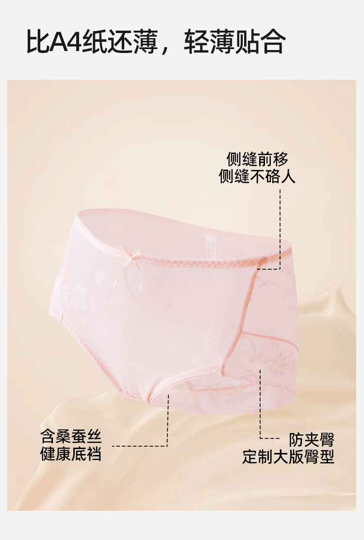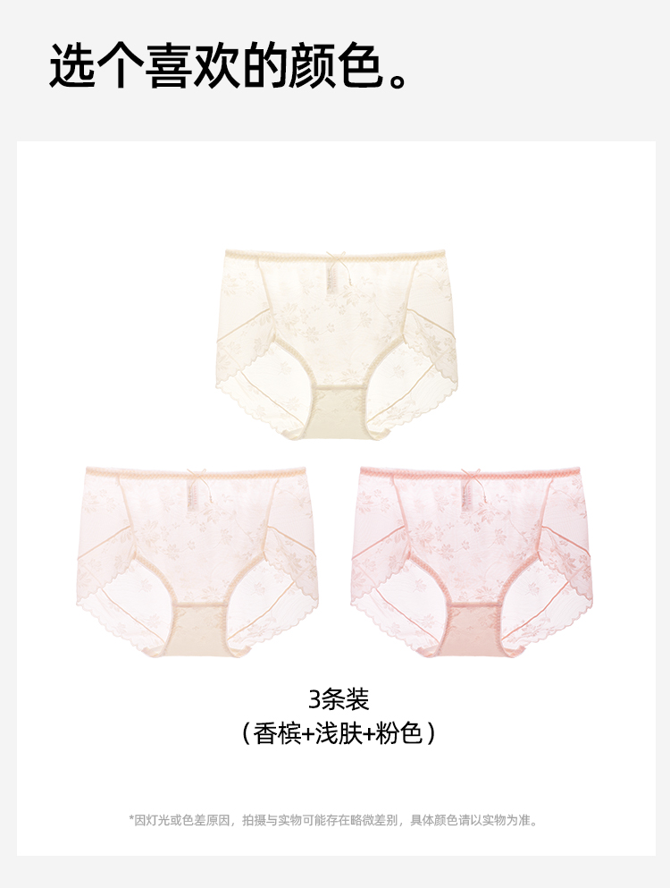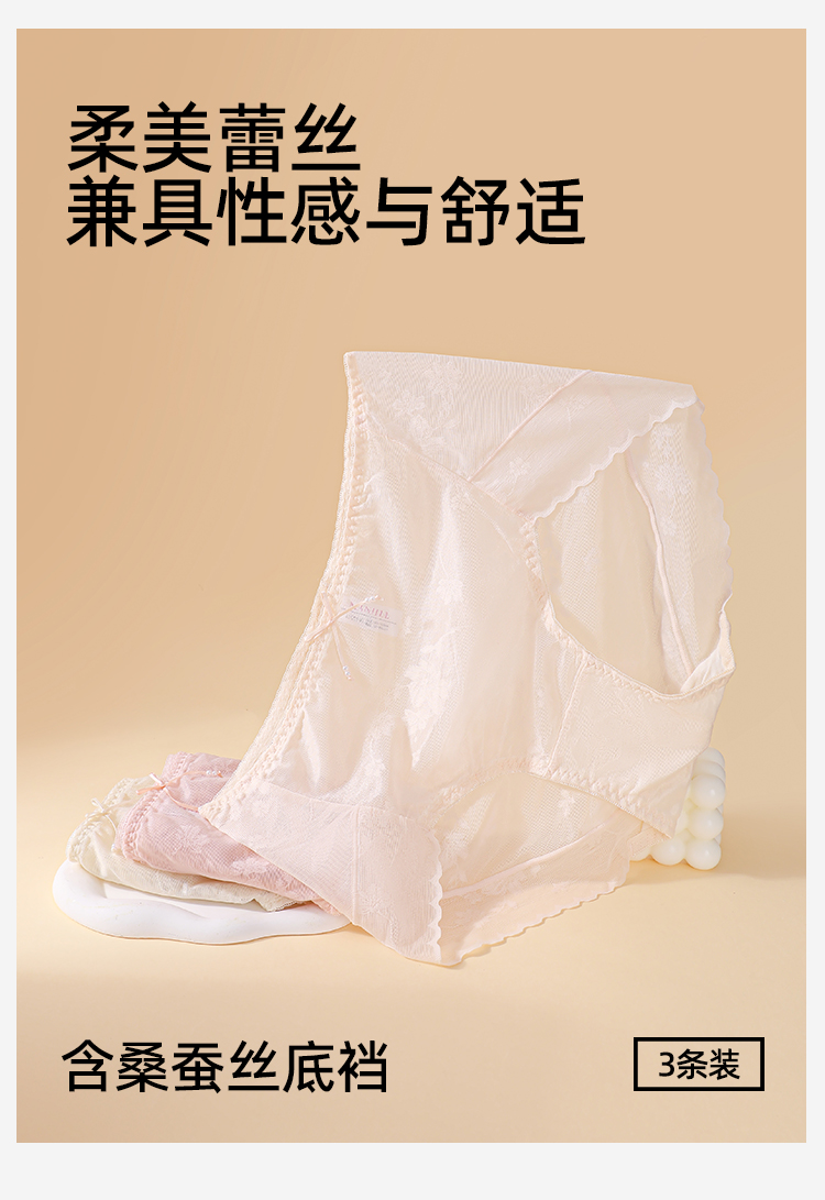 【3条装】熳洁儿 性感蕾丝内裤舒适透气速干桑蚕丝底档24762117