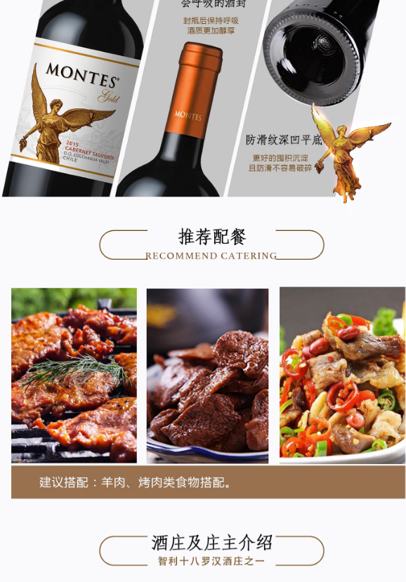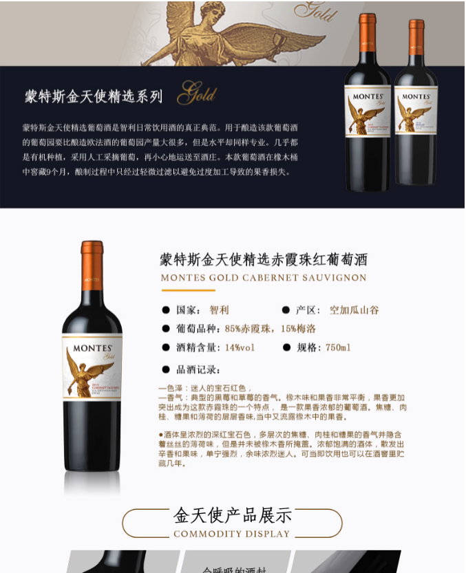 智利蒙特斯金天使 赤霞珠干红葡萄酒 750ml*1瓶/6瓶整箱