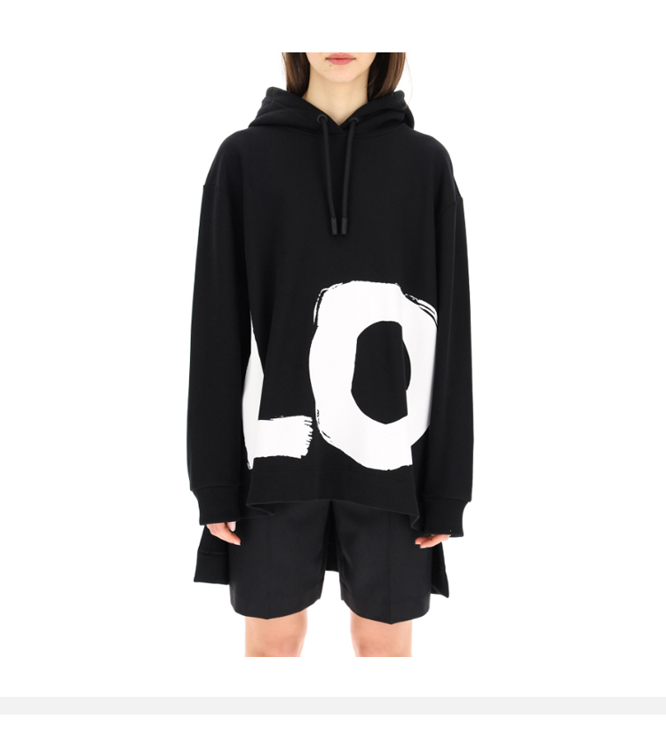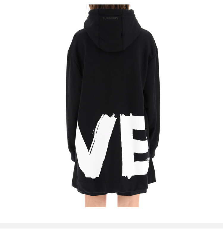 BURBERRY 巴宝莉 女士 Love 印花棉质宽松连帽卫衣 黑色 8037670 A1189