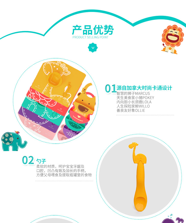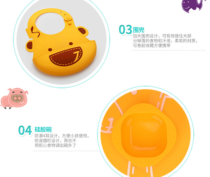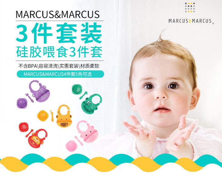 (超值)加拿大MARCUS婴幼儿硅胶餐具套装宝宝吃饭围兜汤勺硅胶碗三件套