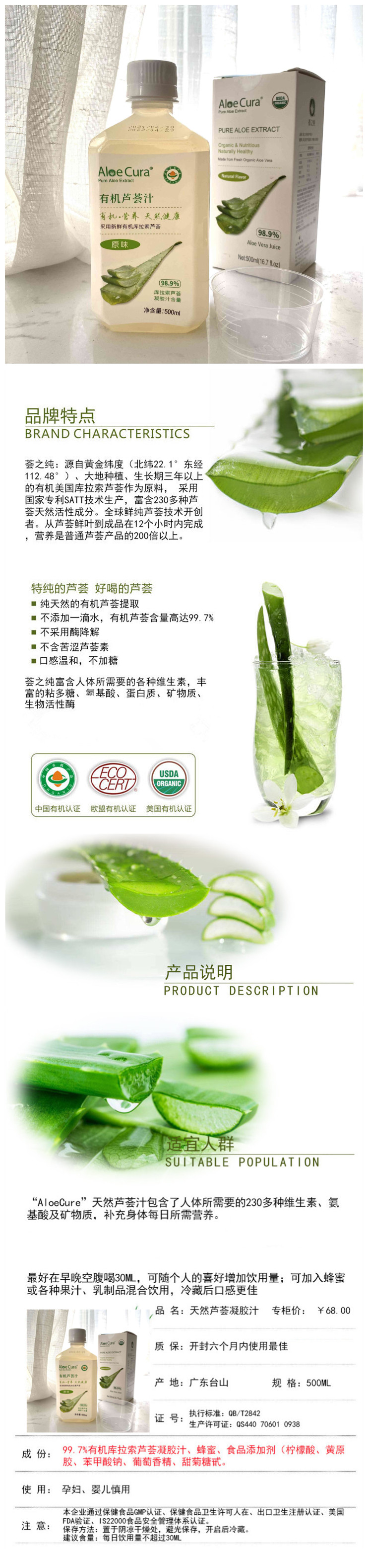 【商品名称】:荟之纯有机芦荟汁