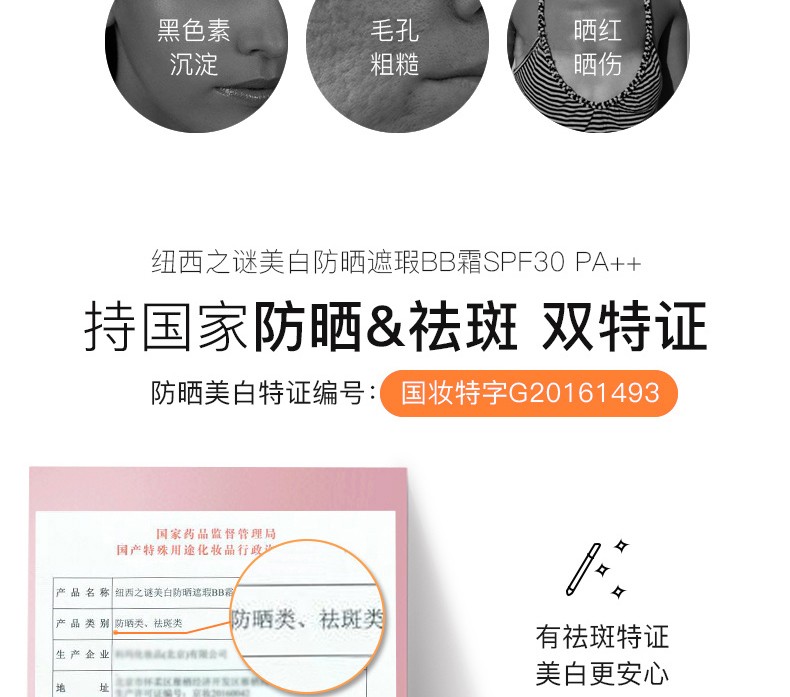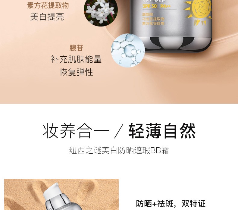 纽西之谜 美白防晒遮瑕BB霜提亮肤色 补水保湿面部遮瑕JPY带授权招加盟代理