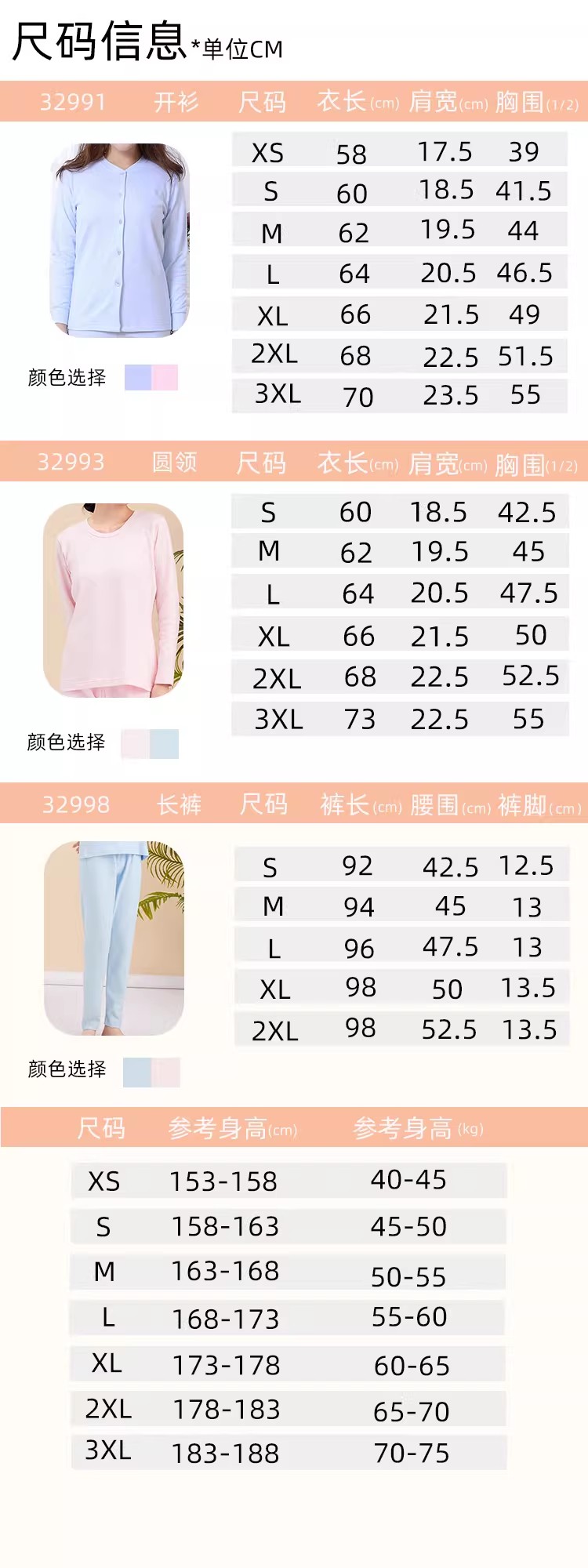 32支女士提花开襟/圆领保暖内衣/秋裤