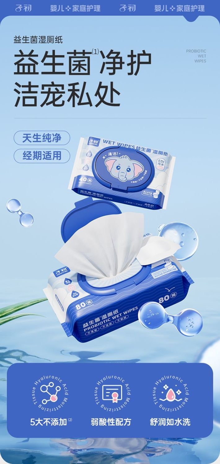子初湿厕纸益生菌如厕专用儿童擦屁屁湿纸巾【38节生活日用福利场】