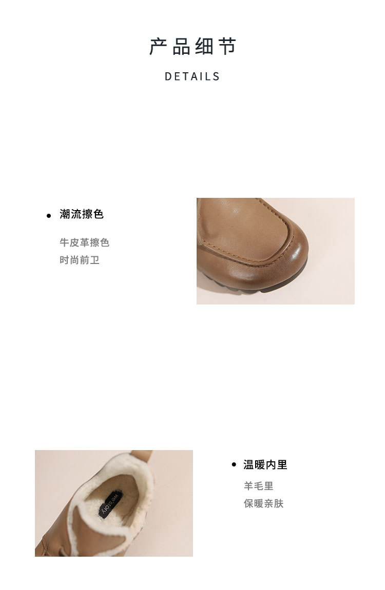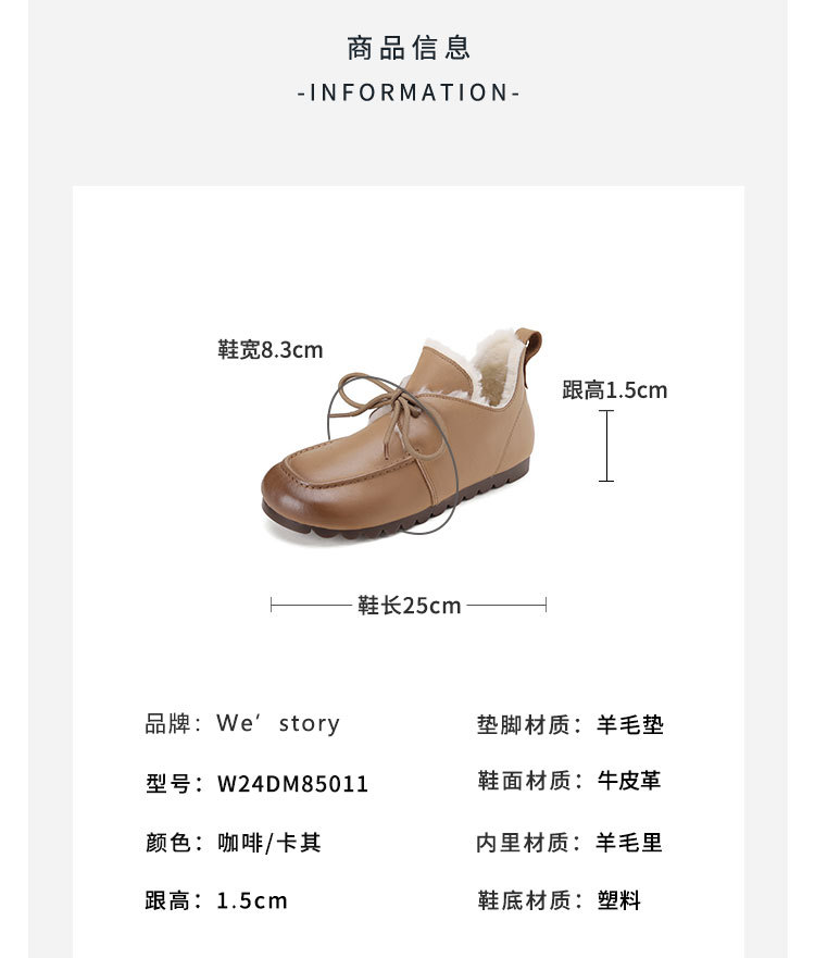 westory2024年秋冬新款休闲风厚底平跟舒适百搭毛毛鞋休闲板鞋W24DM85011