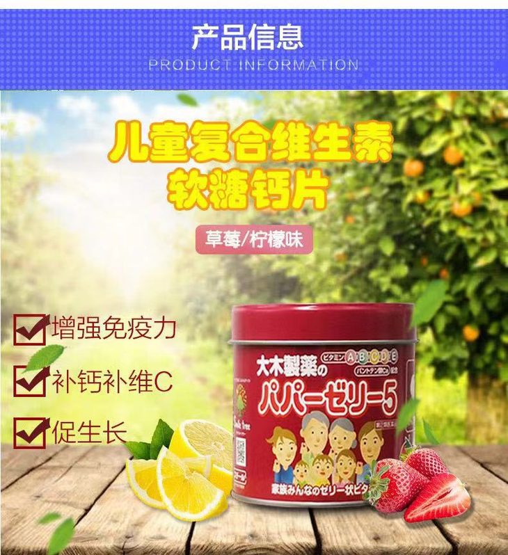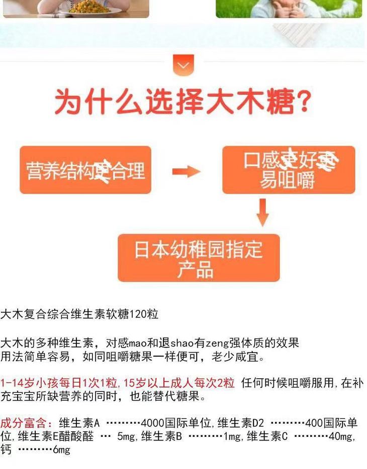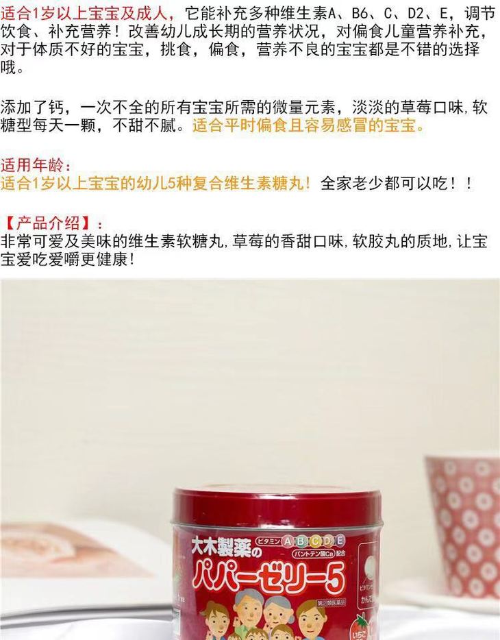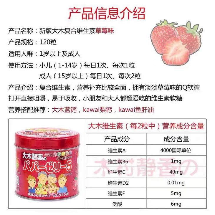 日本大木儿童复合综合维生素软糖宝宝abcde补钙120粒草莓味/会员6折