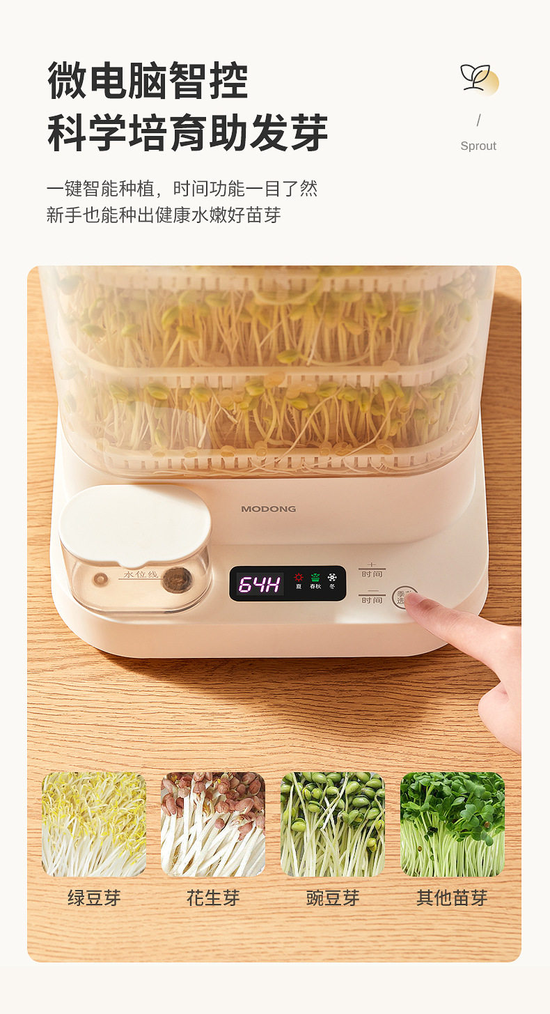 【微电脑智控】科学培育助发芽,时间功能一目了然,新手也能种出健康水嫩好苗芽