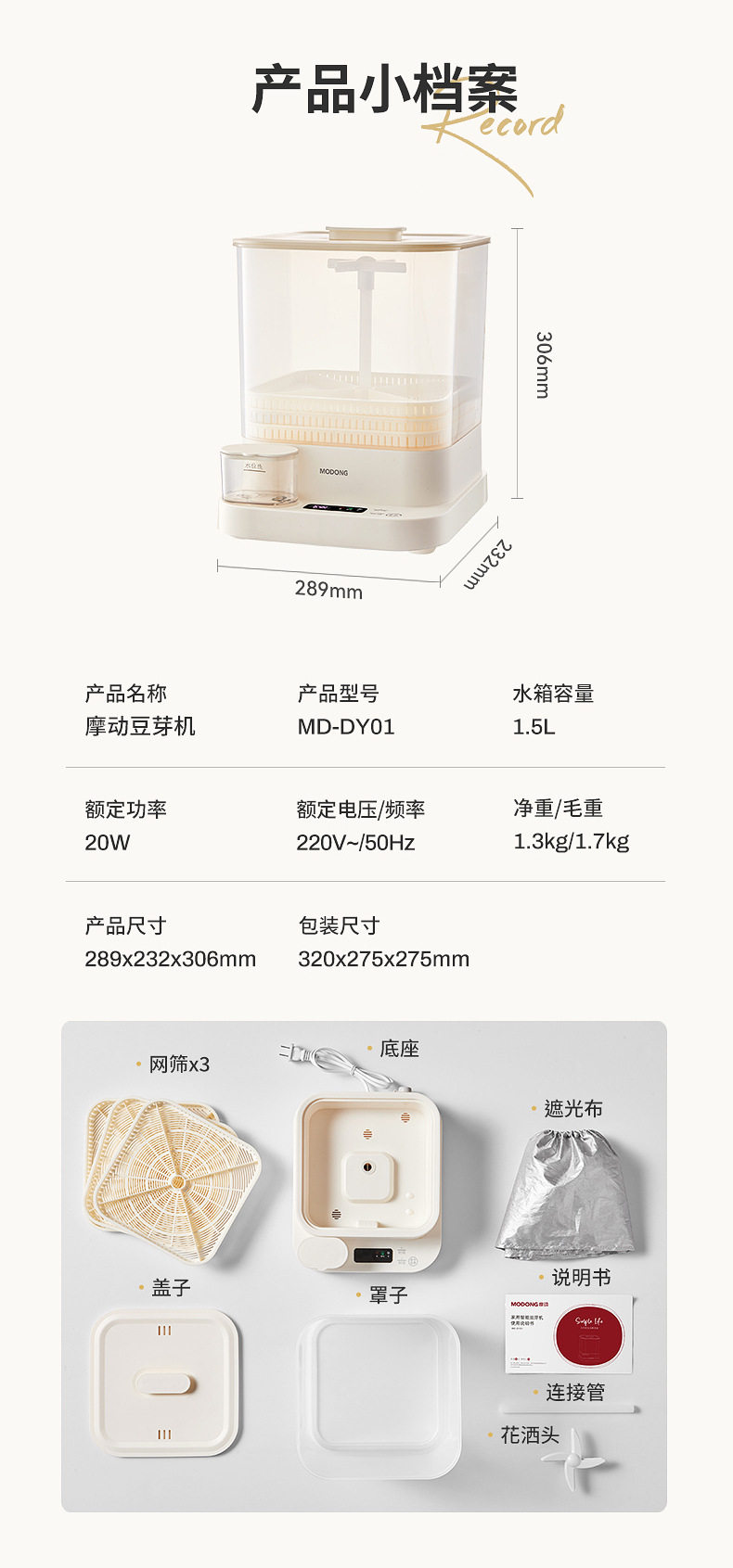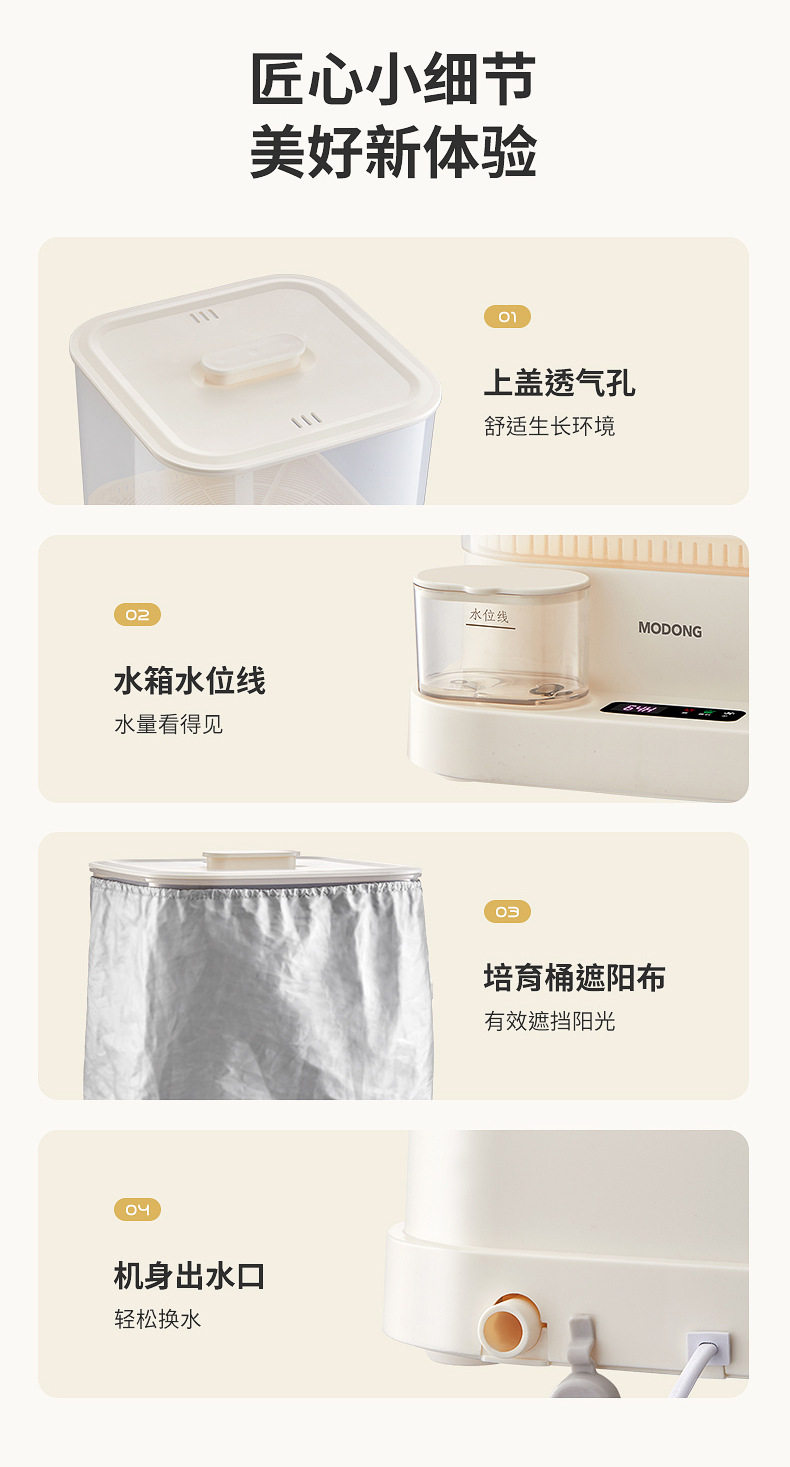 产品容量:3层培养桶、1.5L水箱容量