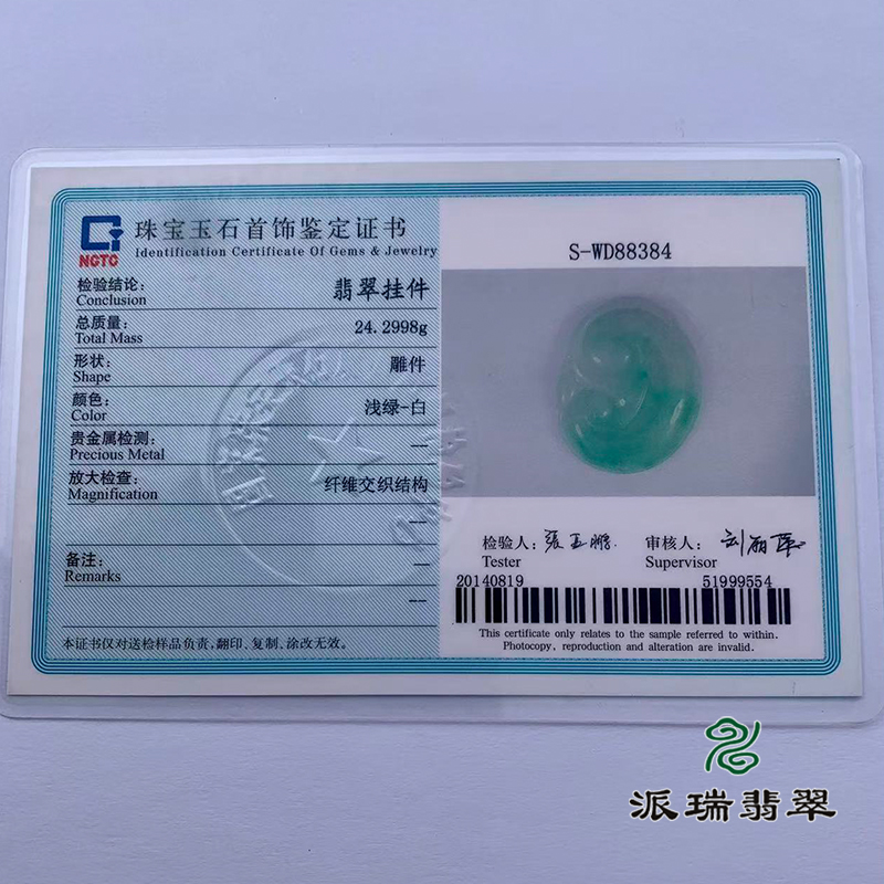 派瑞翡翠 翡翠挂件 糯种 绿色