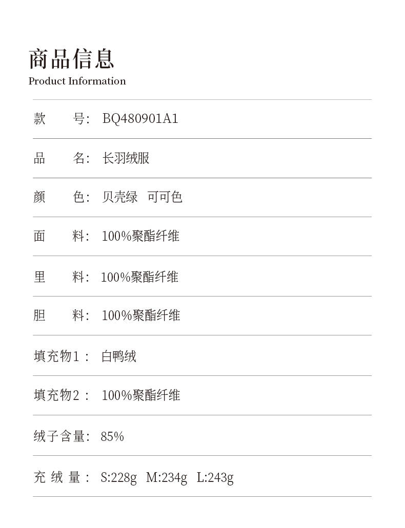 oldcolour欧珂冬季宽松简约休闲保暖纯色长羽绒服女BQ480901A1