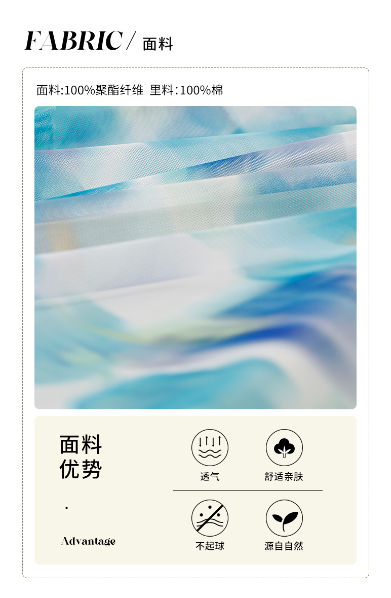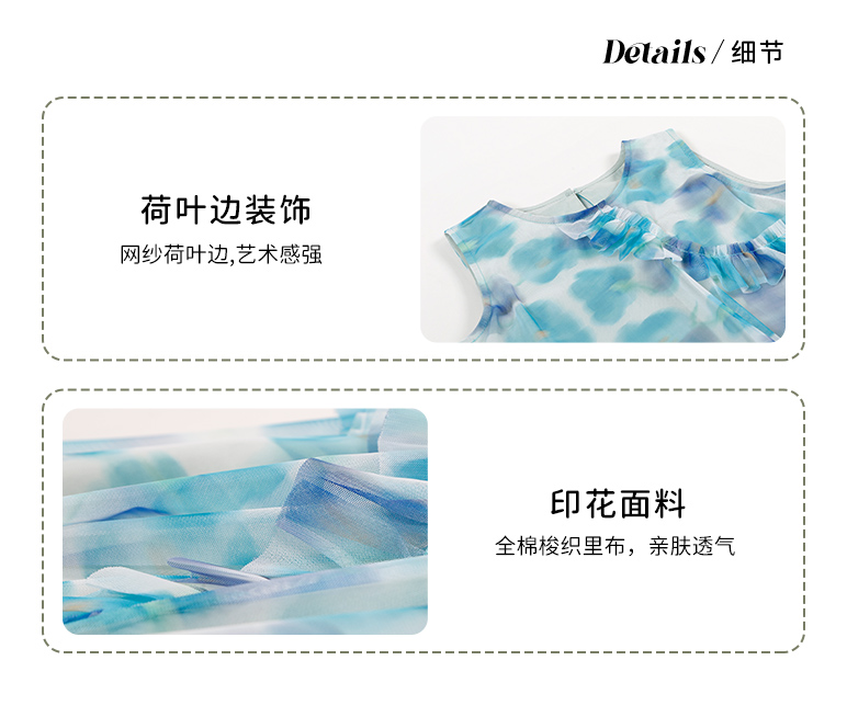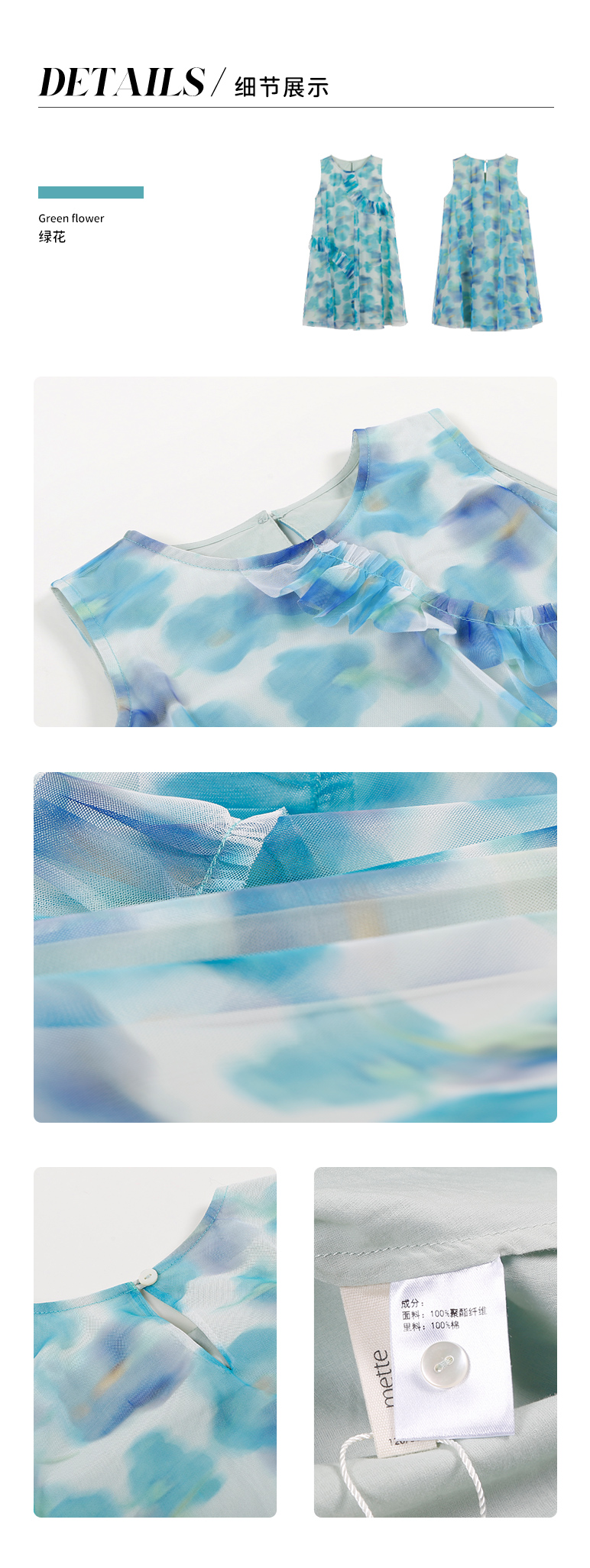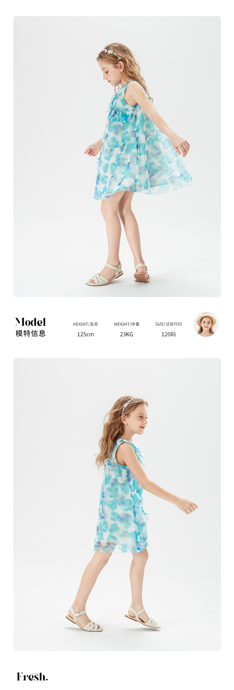mettekids女童连衣裙夏中大童水彩花网纱洋气时髦公主裙儿童裙子