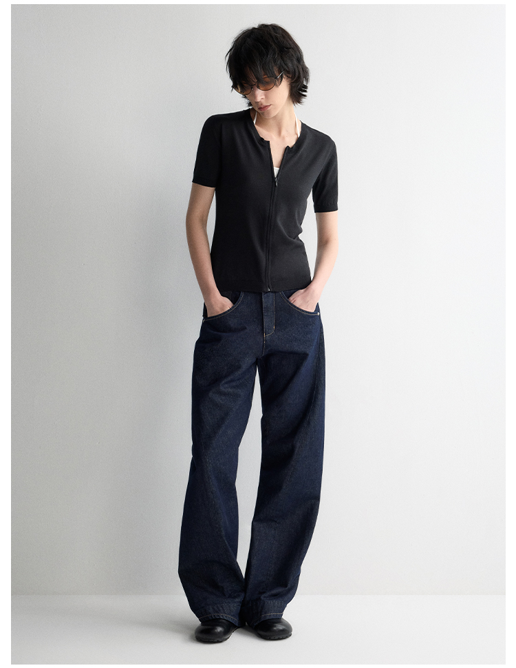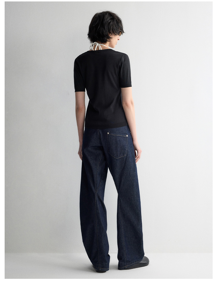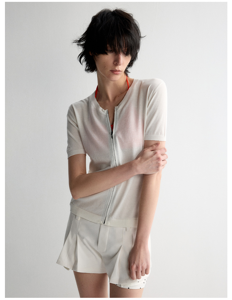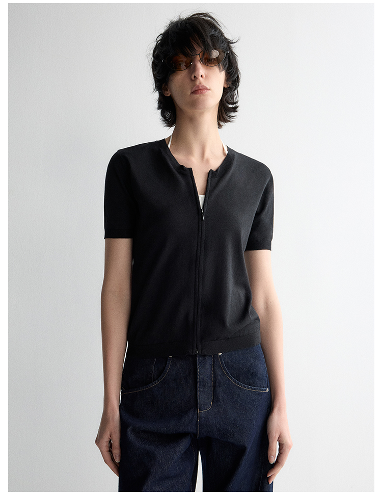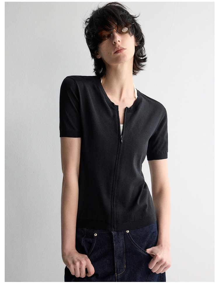 出逃赤岗西/25SST138/隐形拉链小V领显瘦基础款休闲短袖T恤