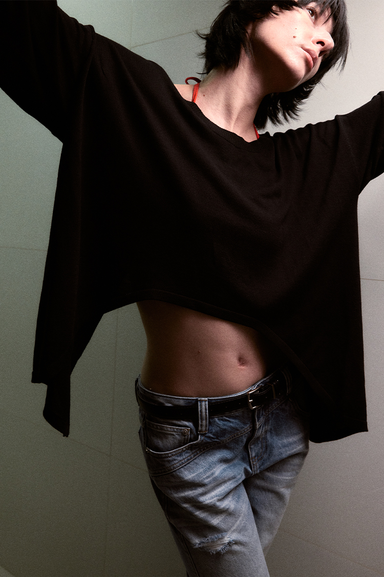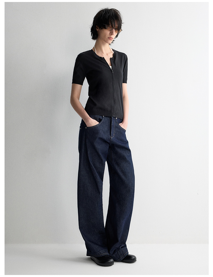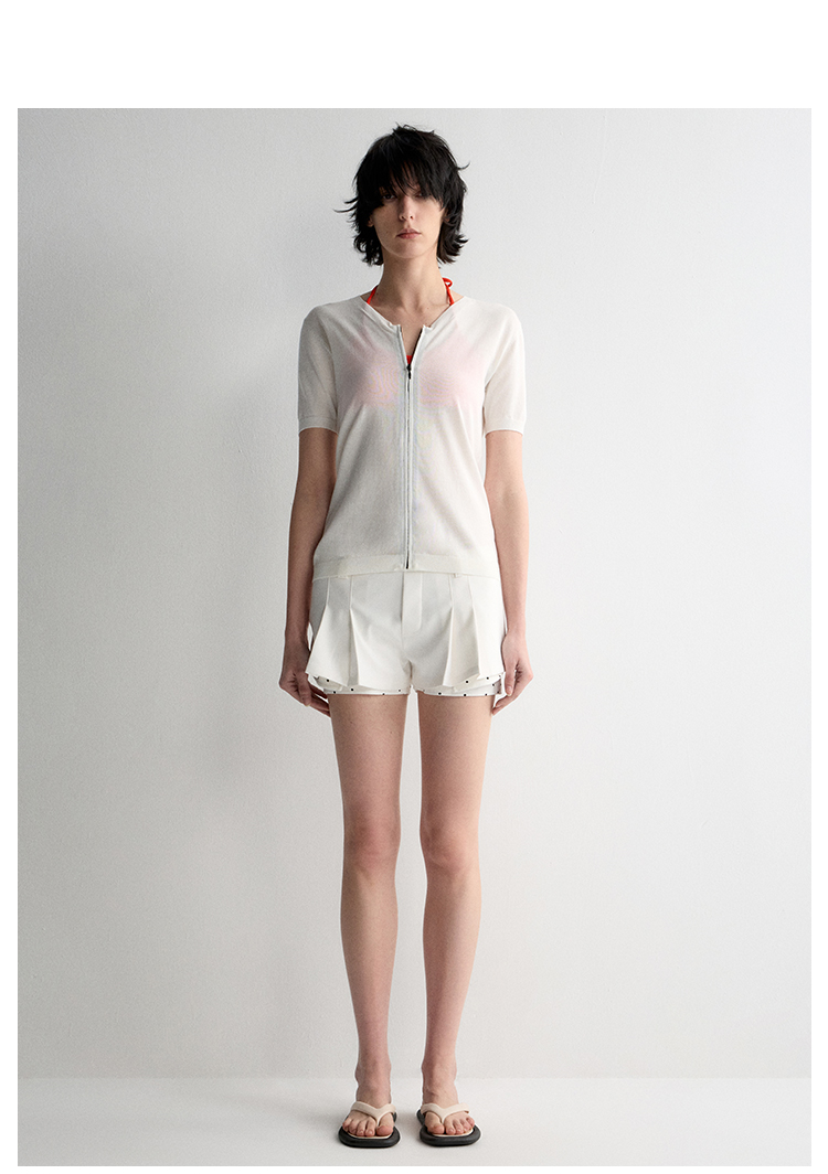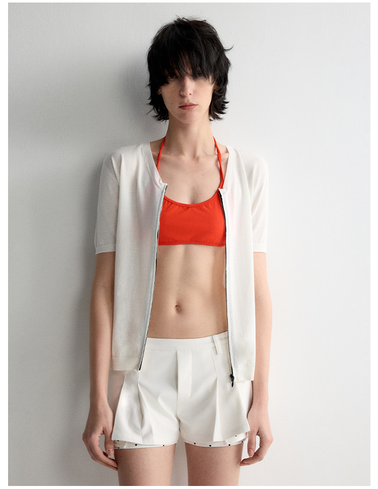 出逃赤岗西/25SST138/隐形拉链小V领显瘦基础款休闲短袖T恤