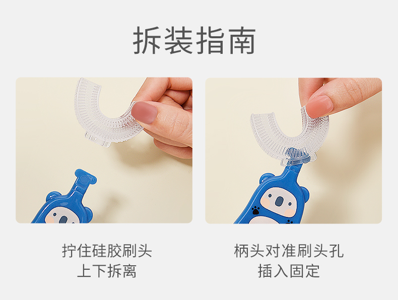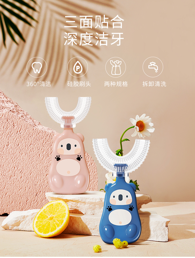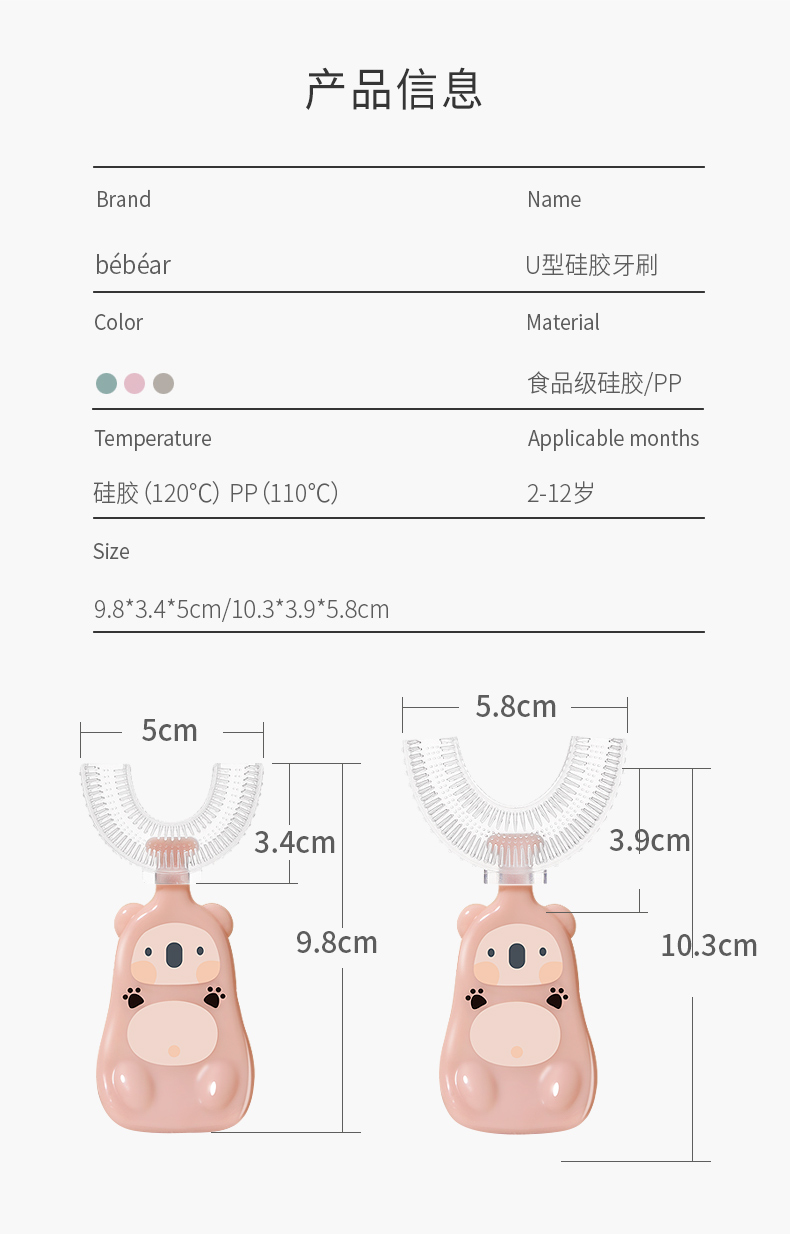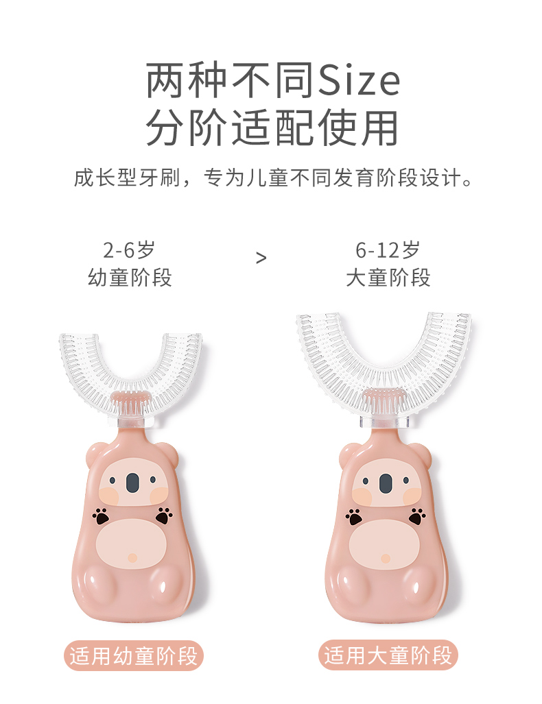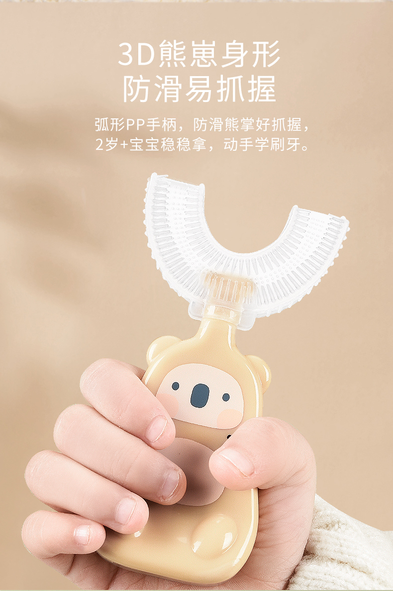 抱抱熊婴儿童u型牙刷宝宝1岁半2-3-6一12岁以上幼儿小孩刷牙神器