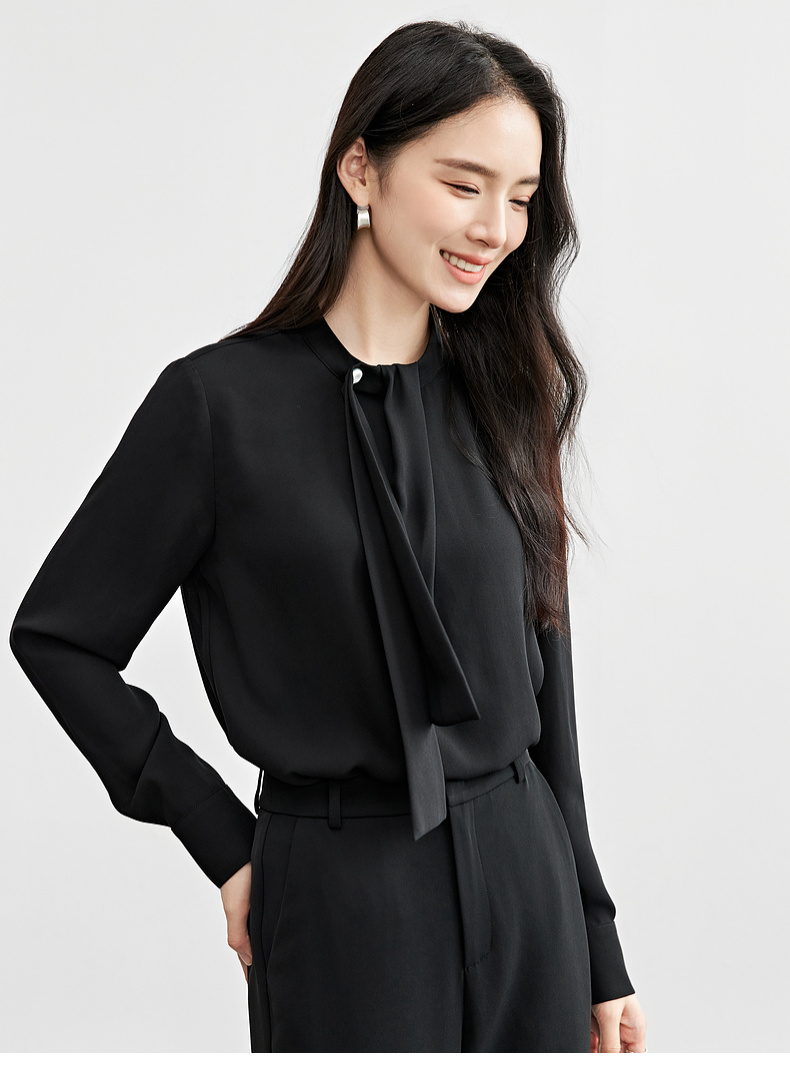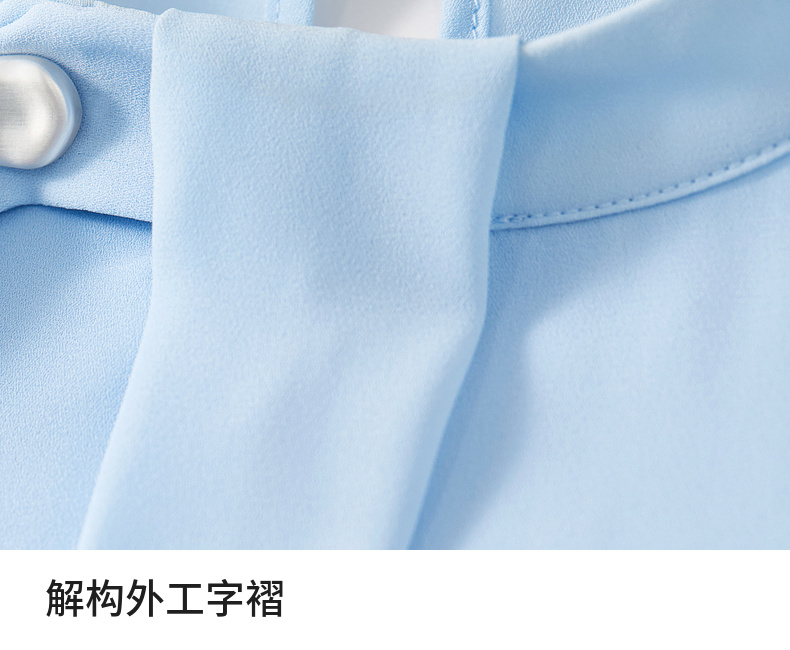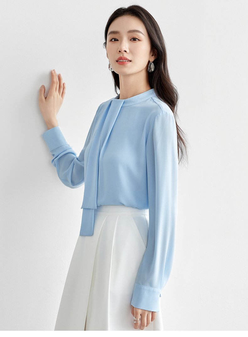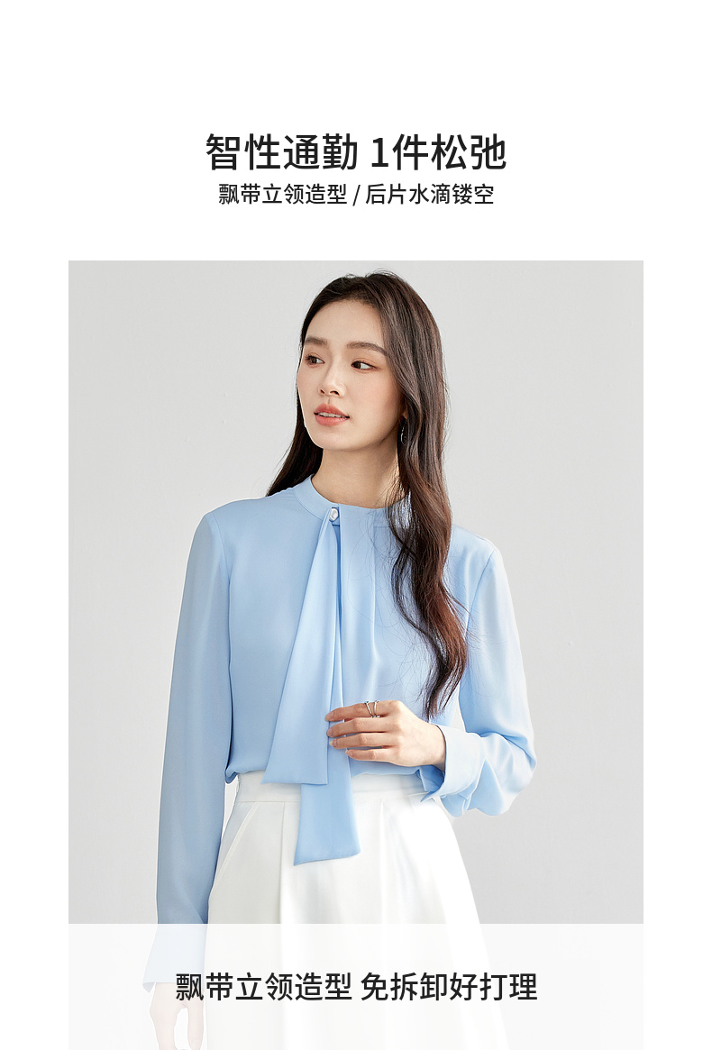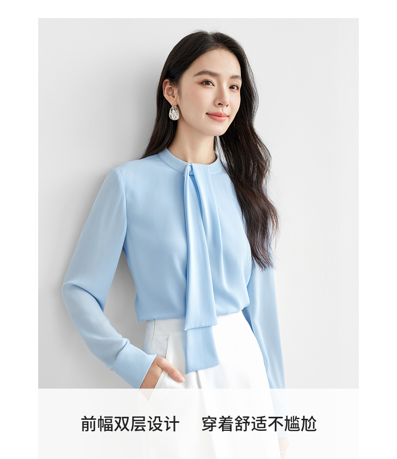 【内购】尚都比拉气质通勤飘带立领手缝蘑菇扣前幅双层宽松显瘦套头雪纺衫-57948