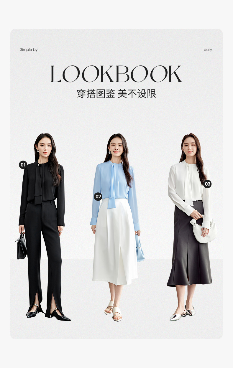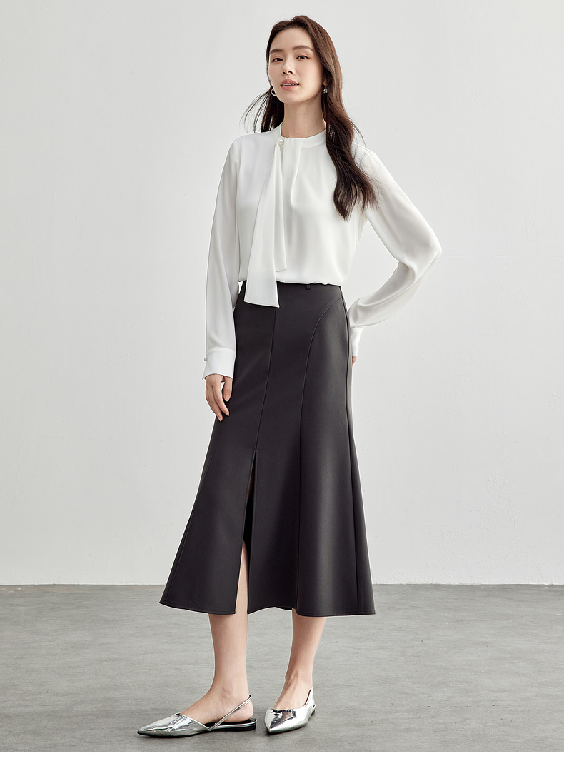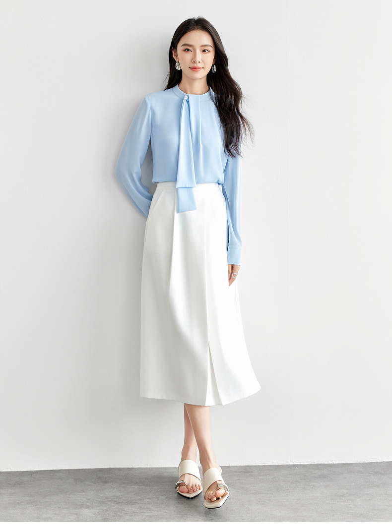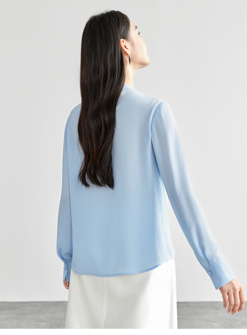 【内购】尚都比拉气质通勤飘带立领手缝蘑菇扣前幅双层宽松显瘦套头雪纺衫-57948