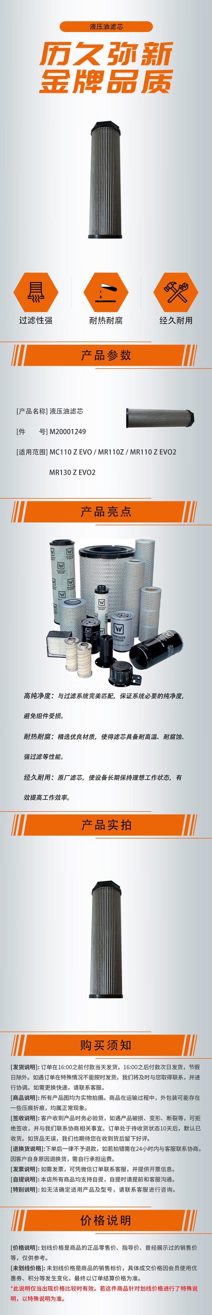 【液压油滤芯M20001249】适用于MC110 Z EVO / MR110Z / MR110 Z EVO2 / MR130Z EVO2