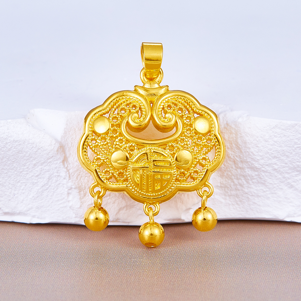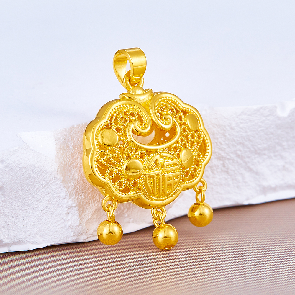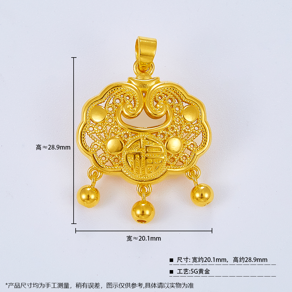 【限时克减128元】足金999 #儿童/宝宝 (足金999字印)5G黄金镂空花丝双面福字锁铃铛如意福字锁包吊坠网红锁包(5GDZ00107)(预售产品下单后不退款不退货不换货不补差价)