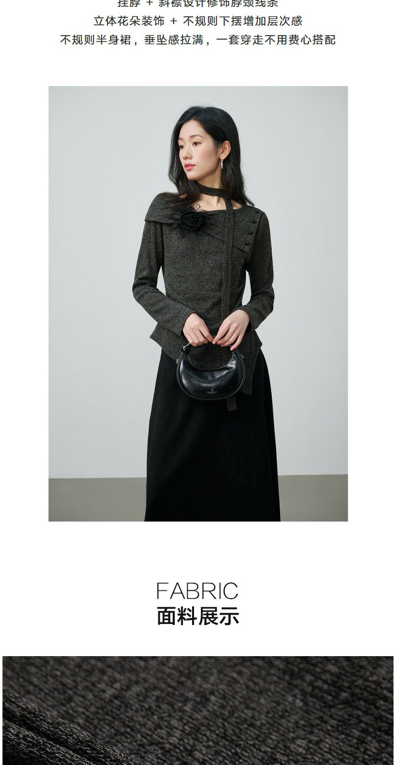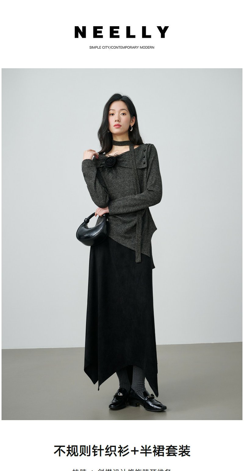 NEELLY纳俪商场同款春新款设计感精致时尚套装女针织衫半裙两件套N26014Z05505