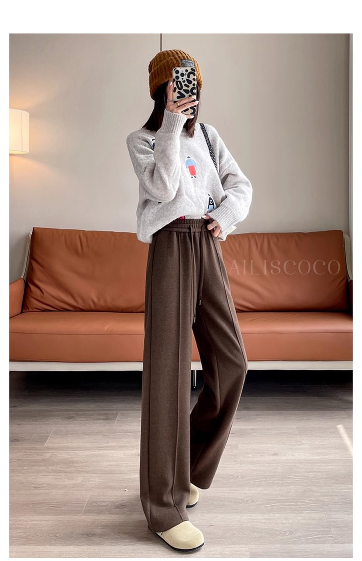 【积分兑换】【人字纹毛呢超模裤】仿羊绒面料加绒加厚 高腰设计抬高身材比例 显高显瘦