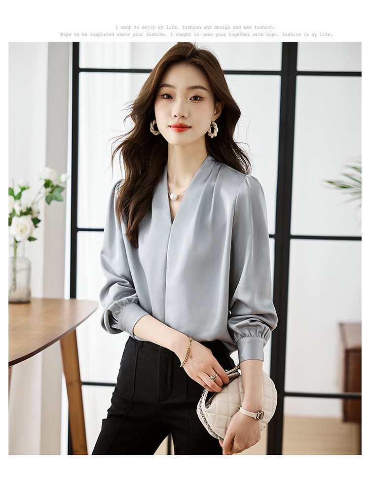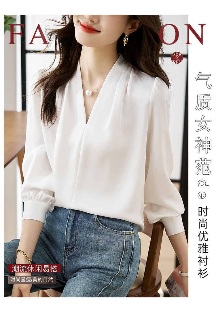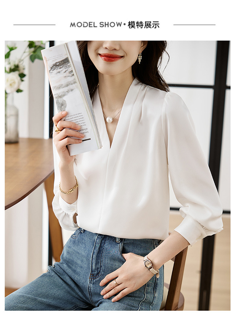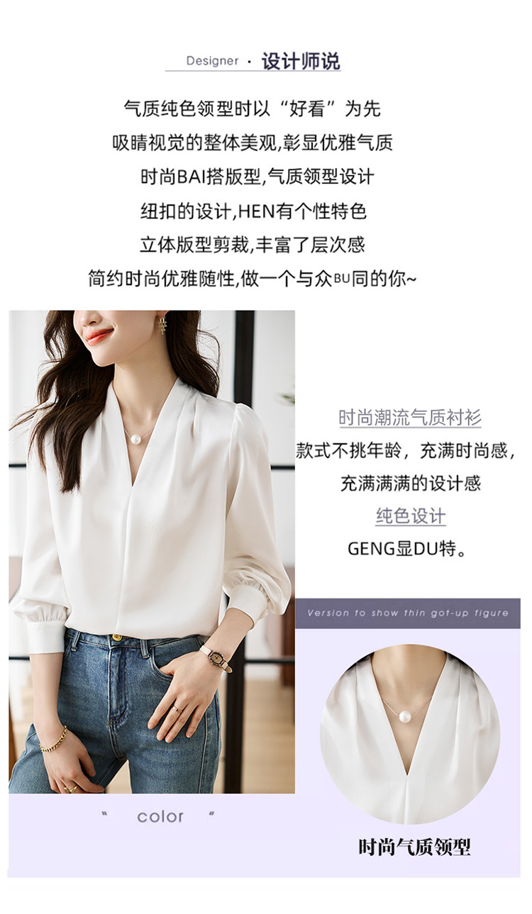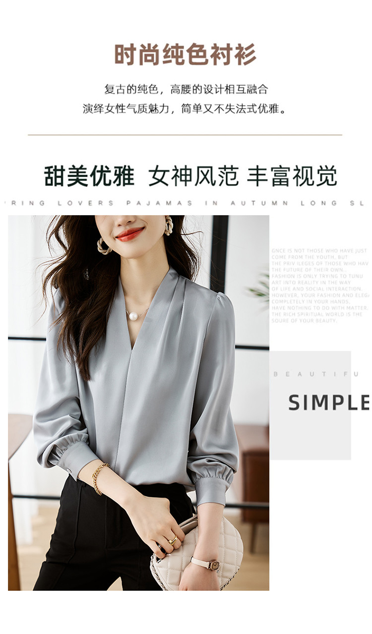 【预售3天】PY-高级感简约衬衫女春季气质V领轻熟风通勤醋酸缎面雪纺衫上衣&5732