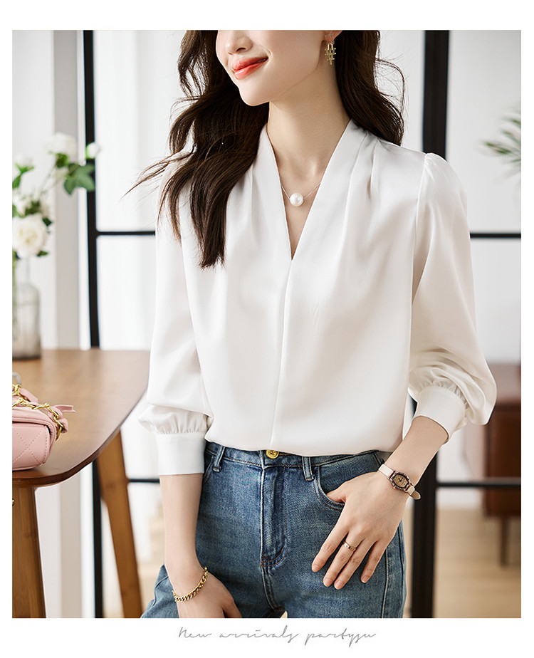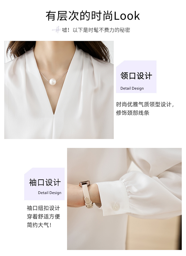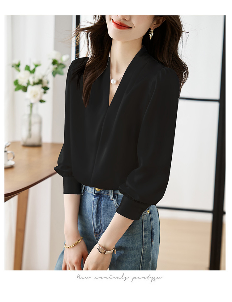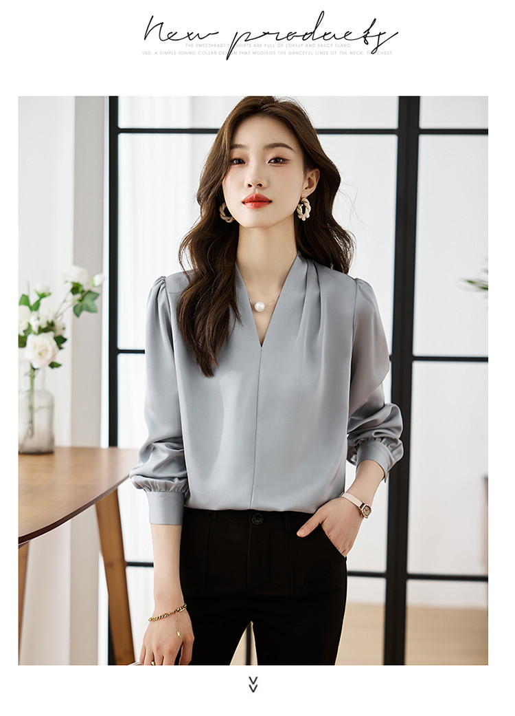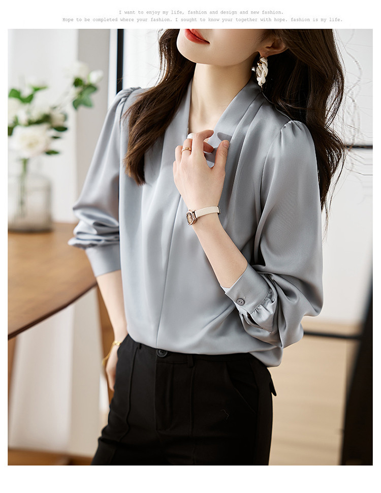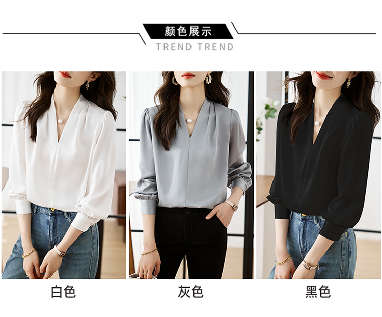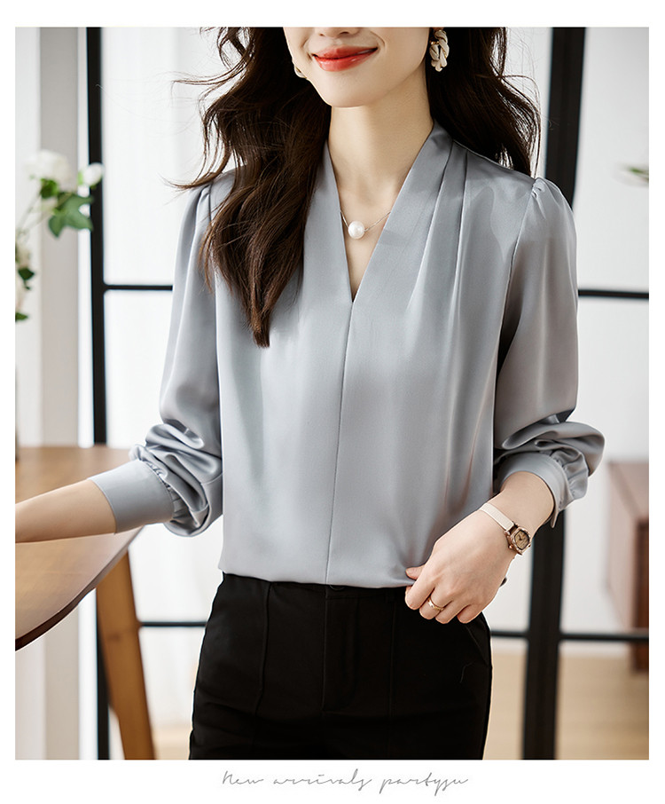 【预售3天】PY-高级感简约衬衫女春季气质V领轻熟风通勤醋酸缎面雪纺衫上衣&5732
