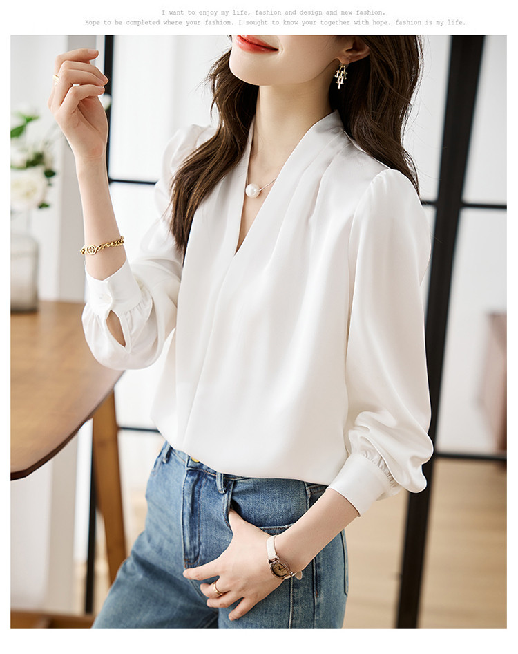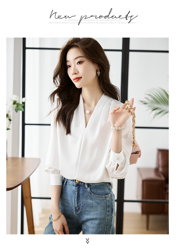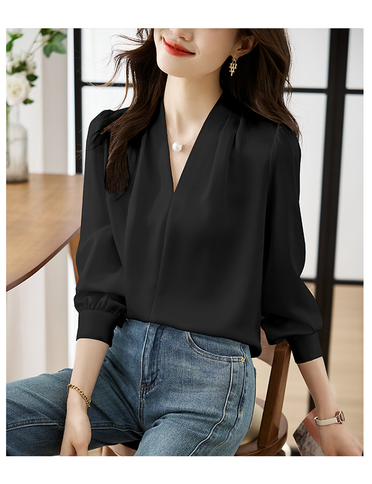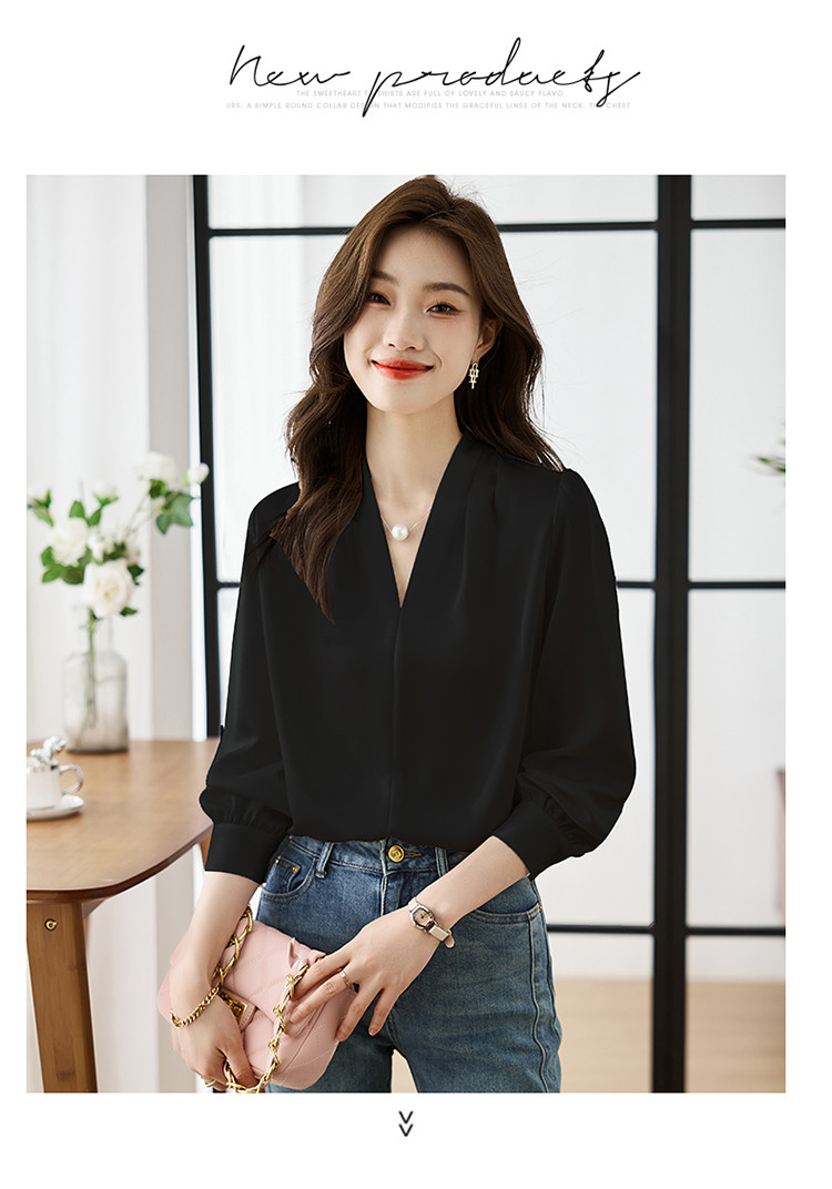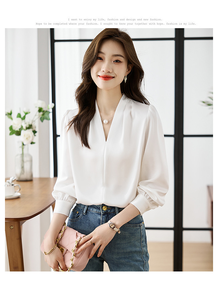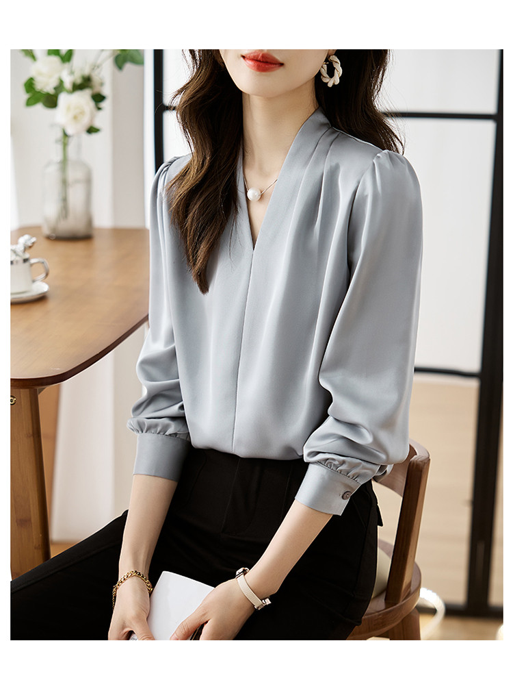 【预售3天】PY-高级感简约衬衫女春季气质V领轻熟风通勤醋酸缎面雪纺衫上衣&5732