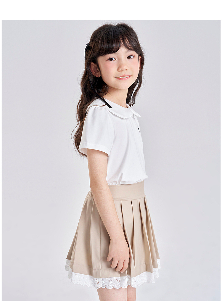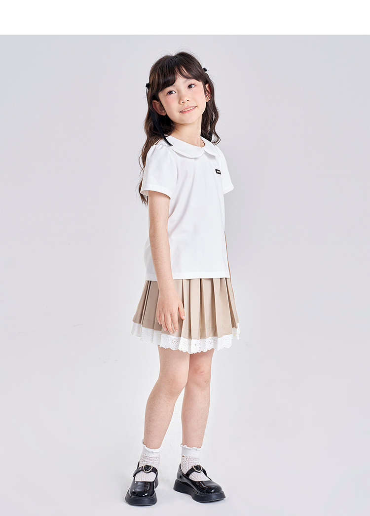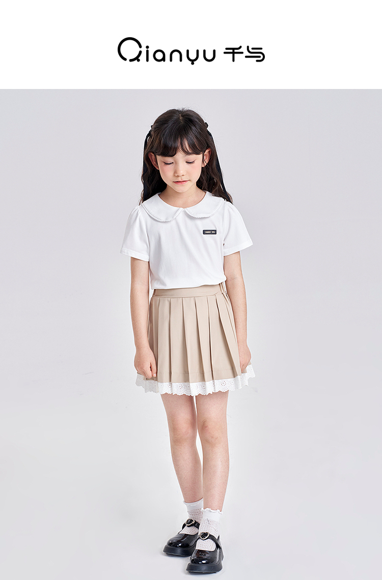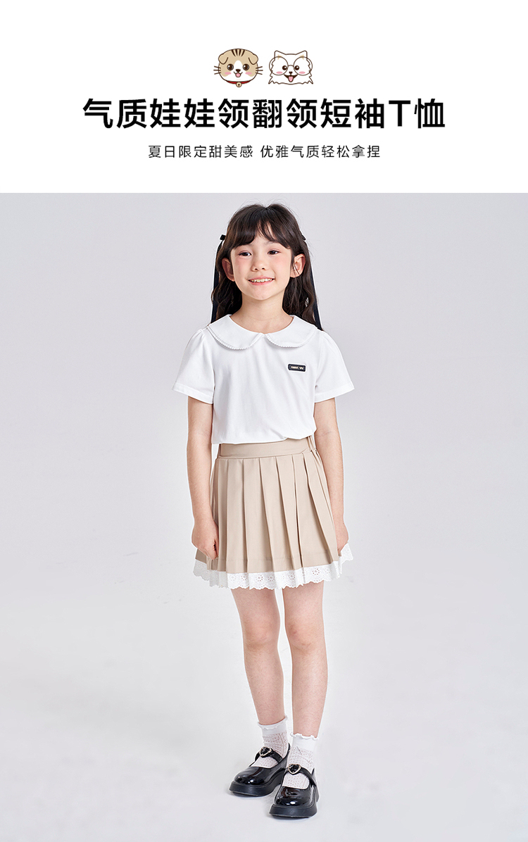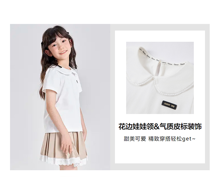 笛莎千与2025夏季新款女童气质娃娃领翻领短袖T恤