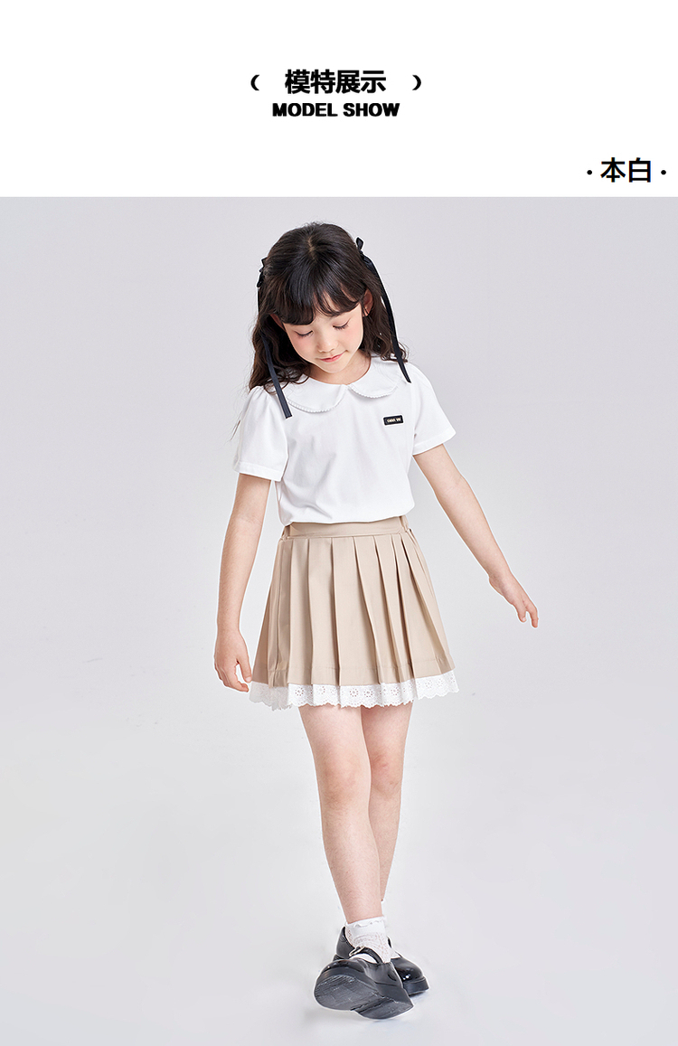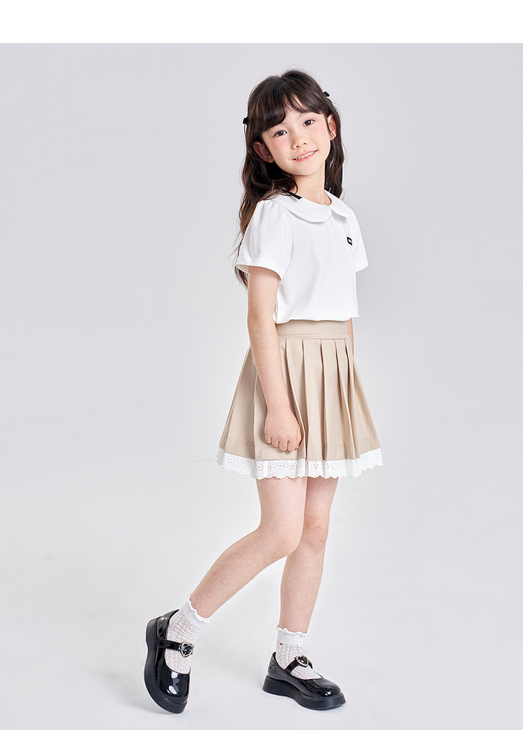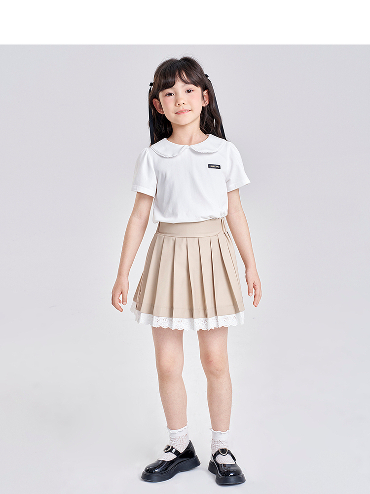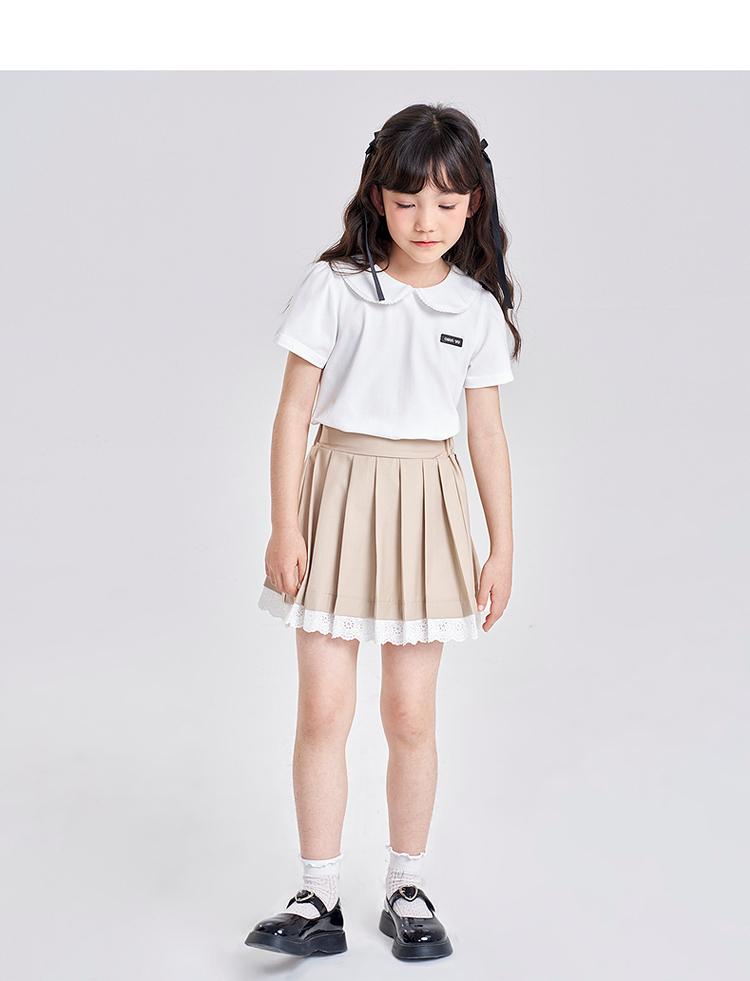 笛莎千与2025夏季新款女童气质娃娃领翻领短袖T恤