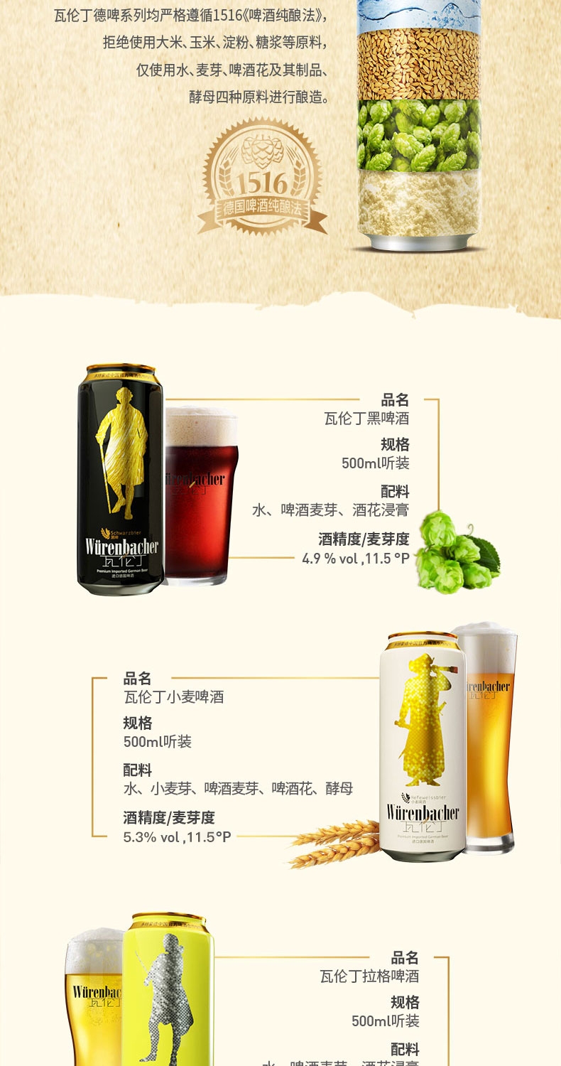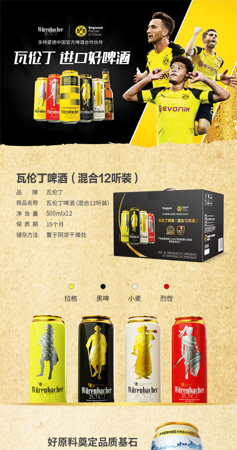 【24听装】德国瓦伦丁系列啤酒500ml*24黑啤/小麦啤/烈性啤/拉格啤/荷拉斯啤酒 一次尽享德啤经典 012117/012118/012119/012120/012489