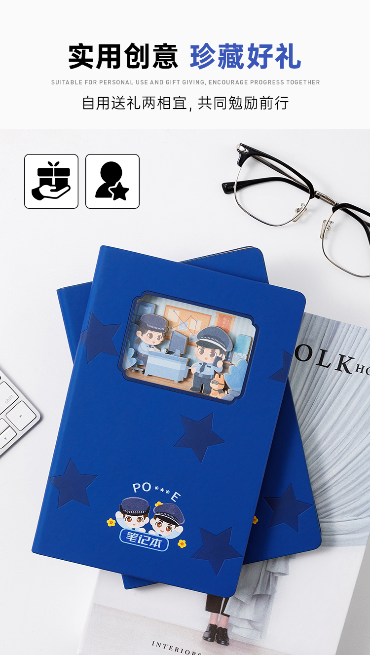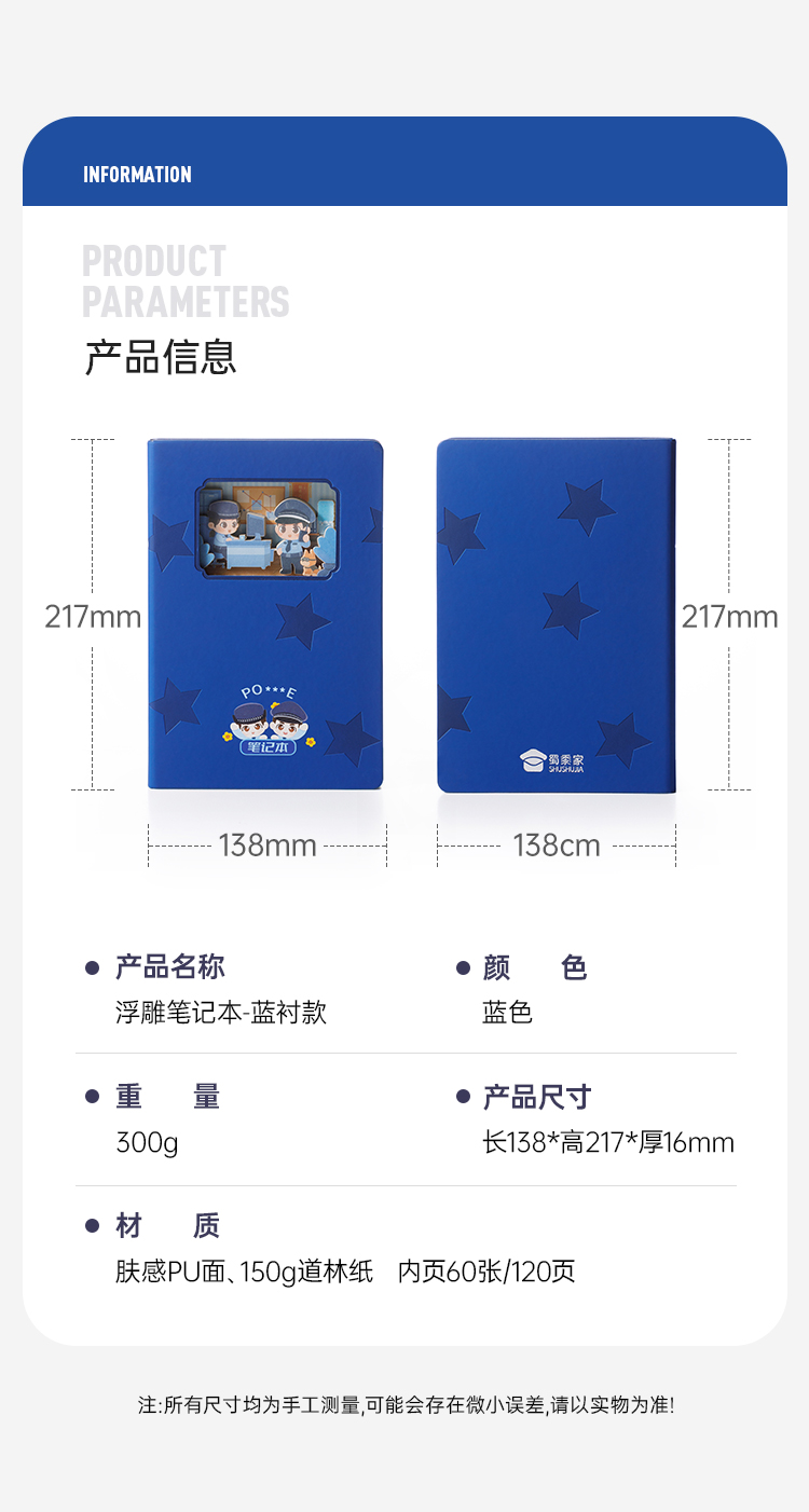 【实付满199送钥匙扣】【浮雕蓝衬笔记本】日用办公会议本PU皮封面记事本日记本