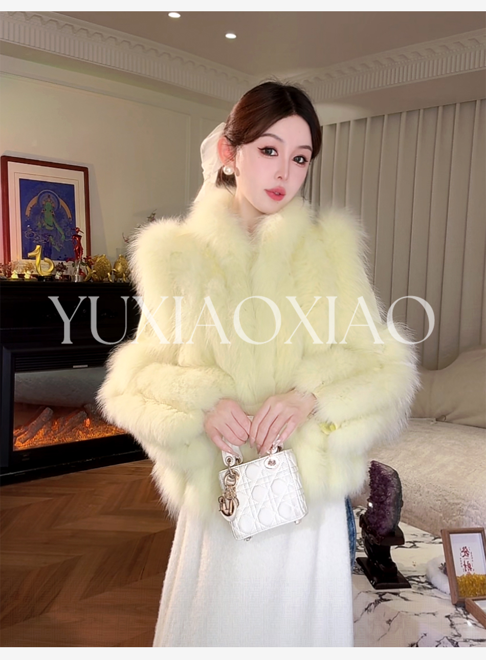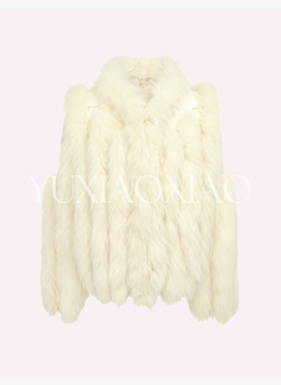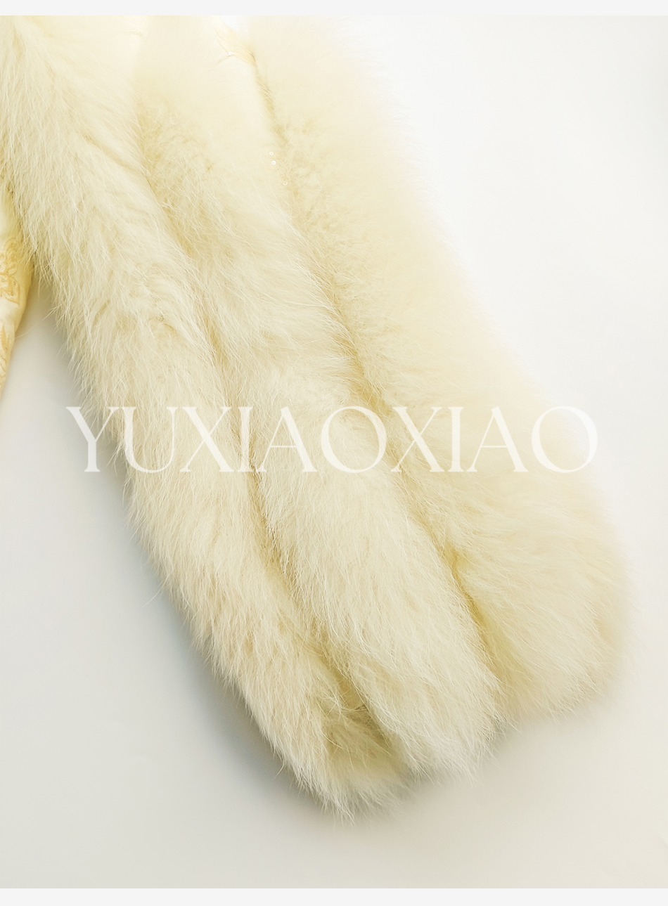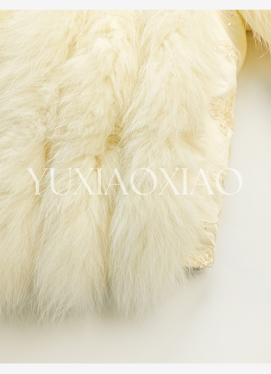 余潇潇【日光岛屿】轻奢狐狸毛拼接天丝混纺珠片刺绣充薄棉皮草外套