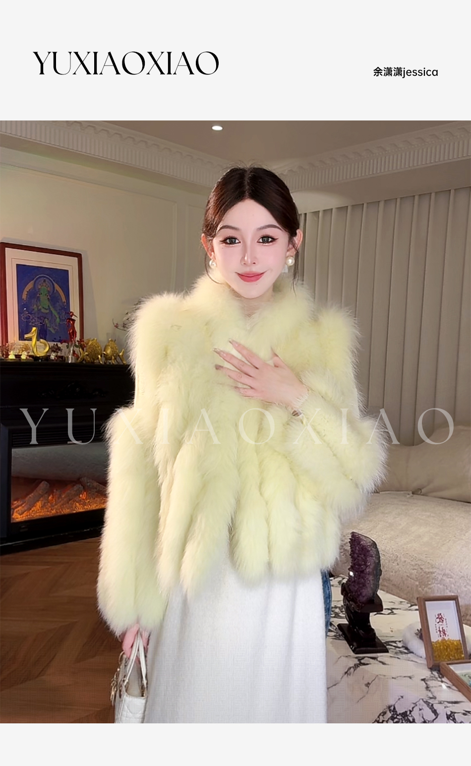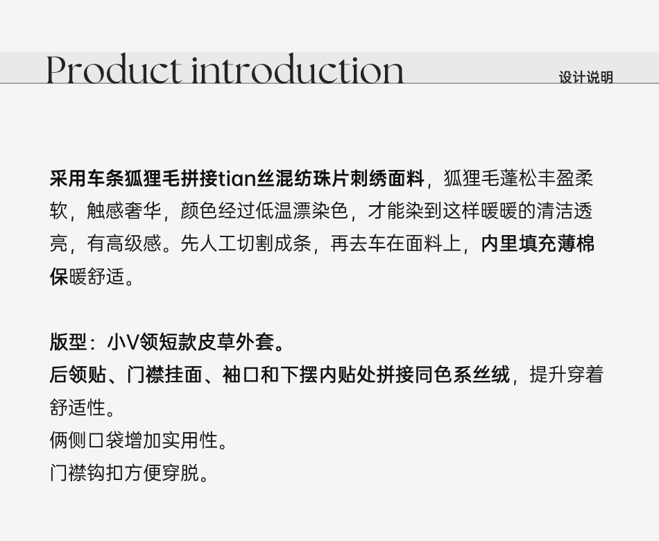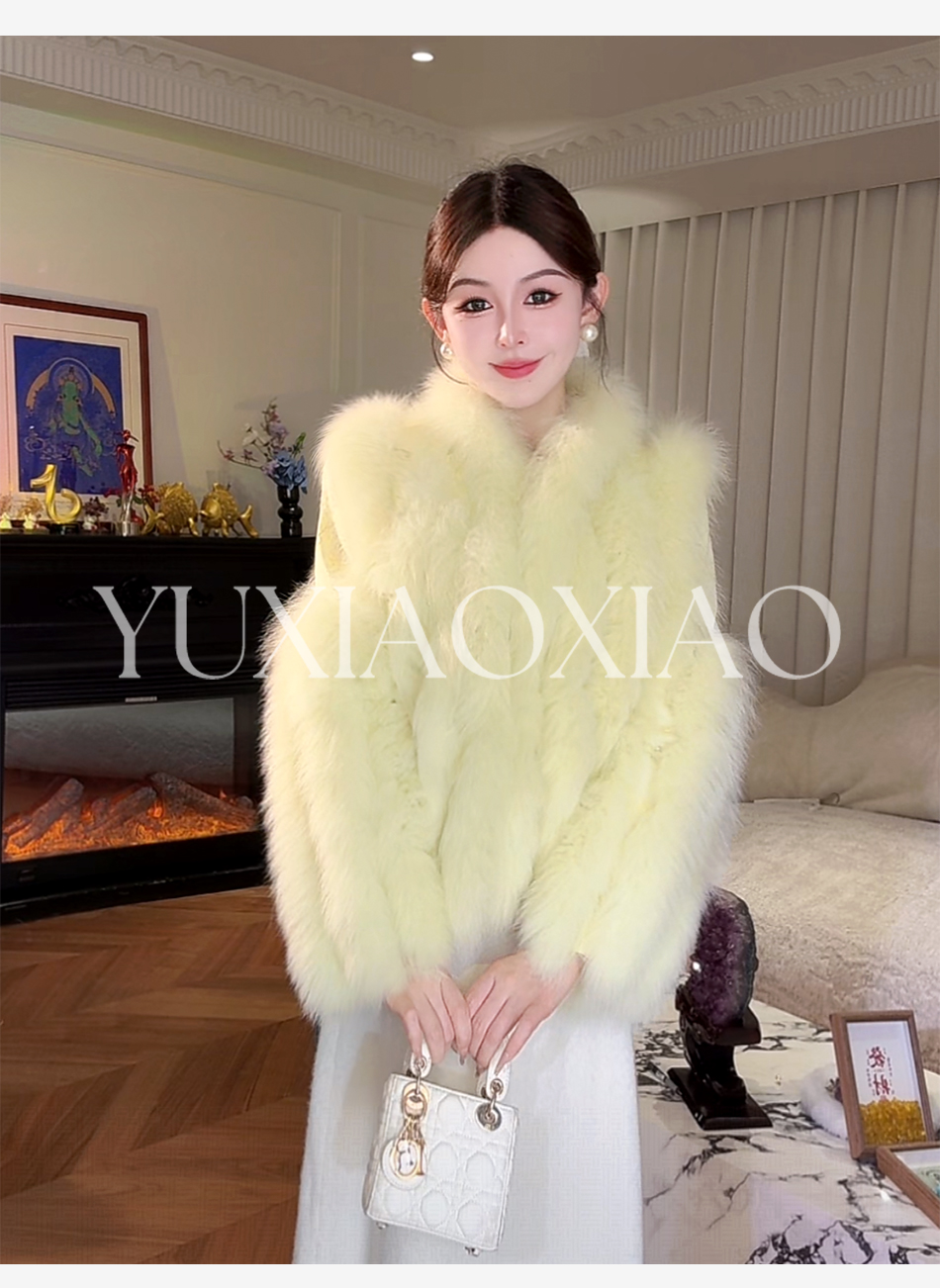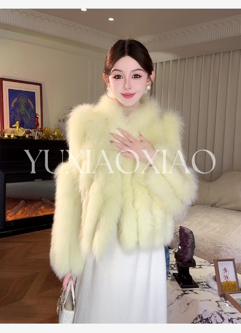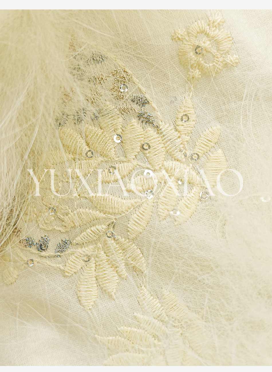 余潇潇【日光岛屿】轻奢狐狸毛拼接天丝混纺珠片刺绣充薄棉皮草外套