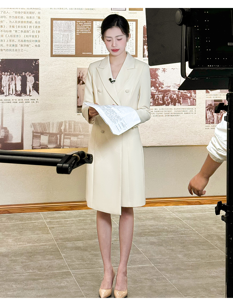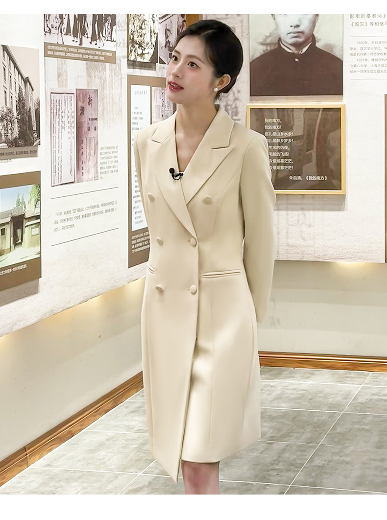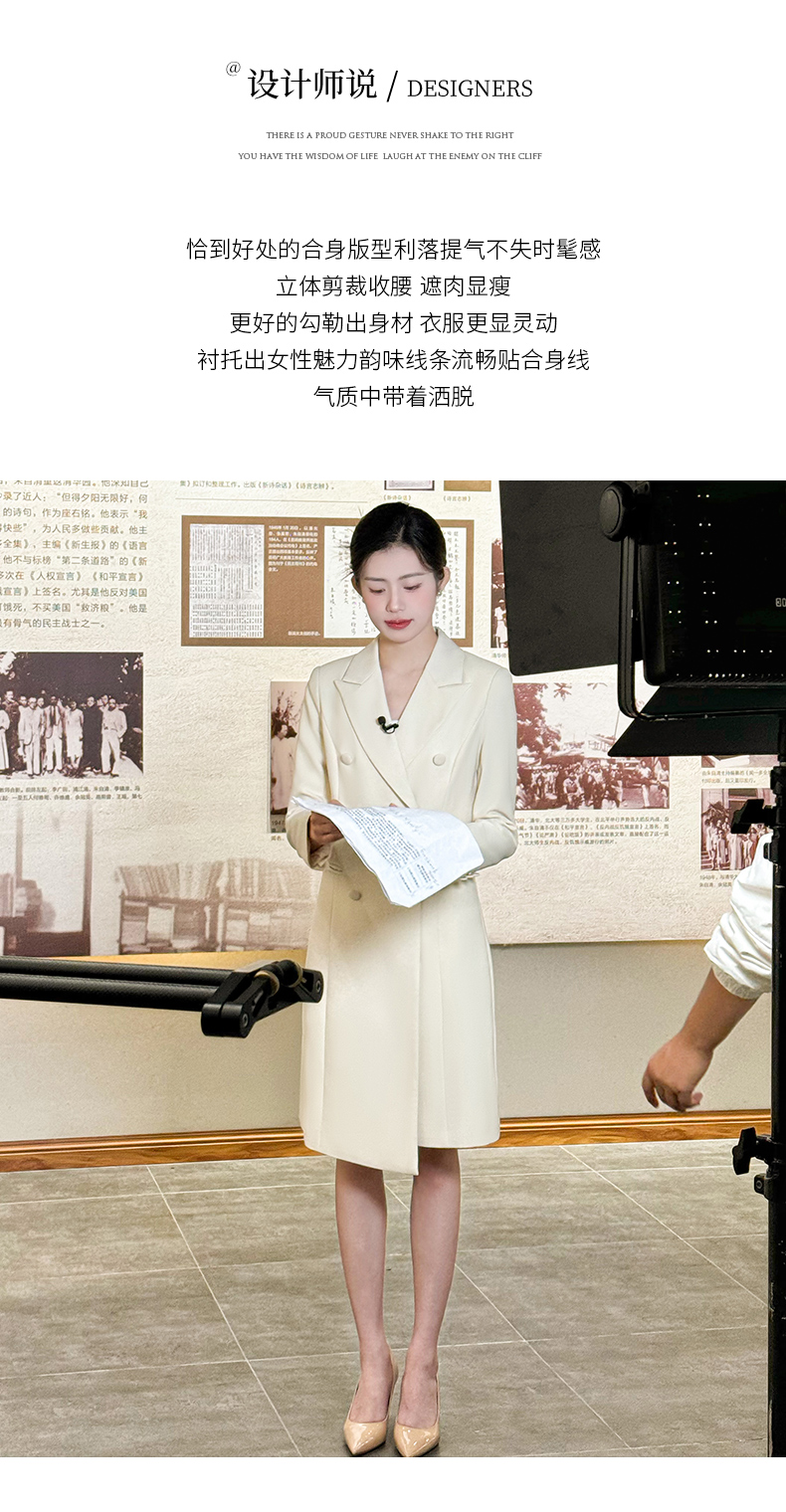 法小曼*子珍专款/气质杏色西装连衣裙艺考上镜工作服主持人面试正装职业裙