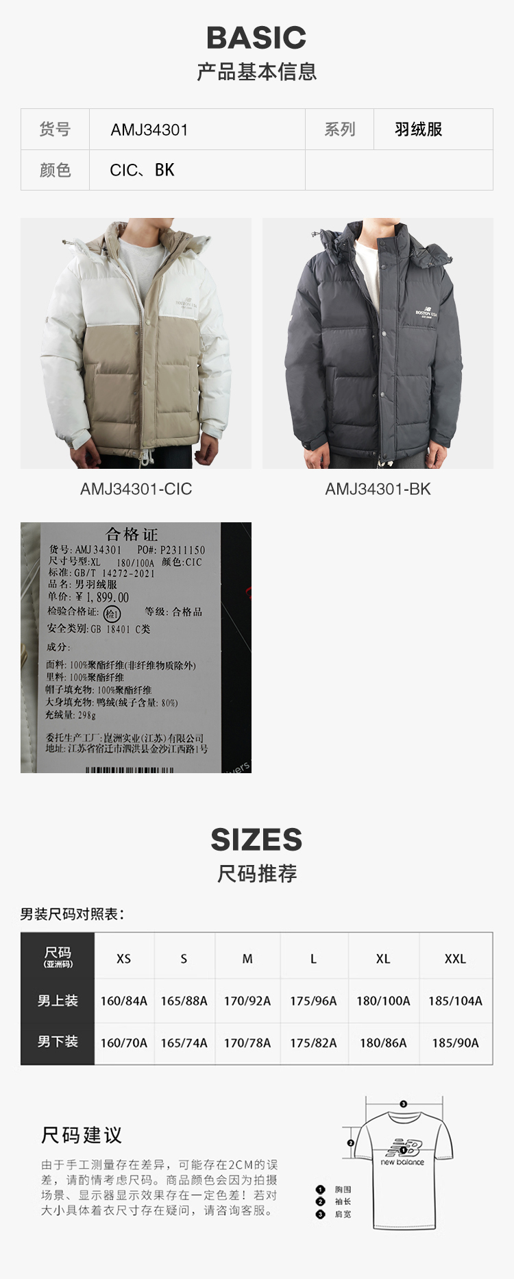 New Balance Academy Color Blocking Down Jacket 羽绒服男款冬季户外运动保暖羽绒服