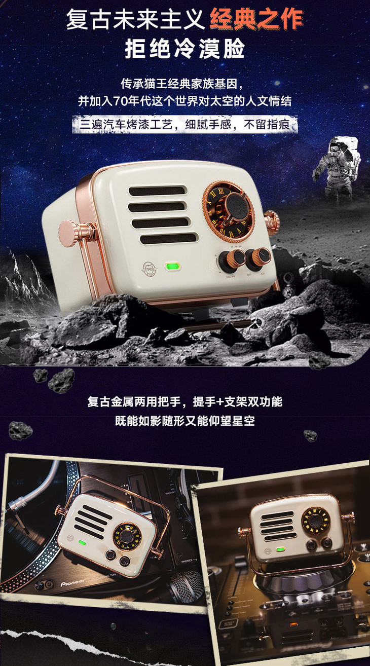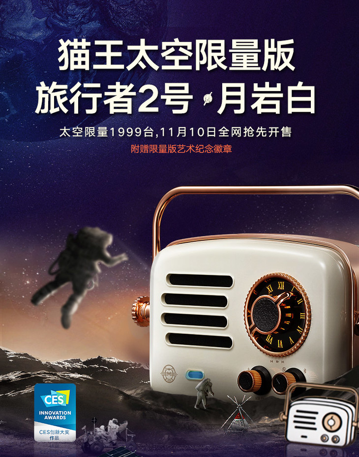 猫王收音机MW-R 旅行者2号太空版智能网络收音机便携蓝牙音箱音响
