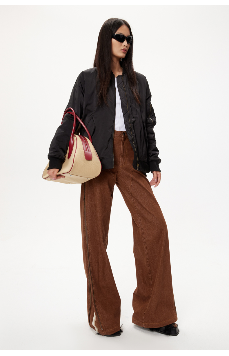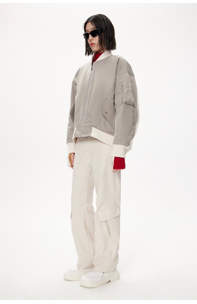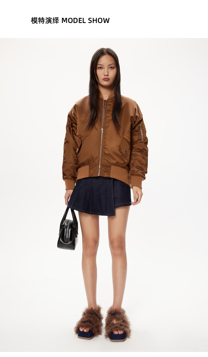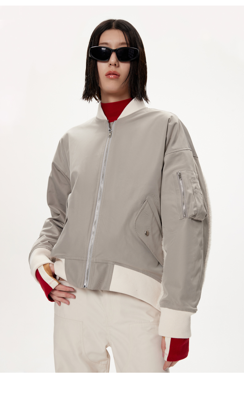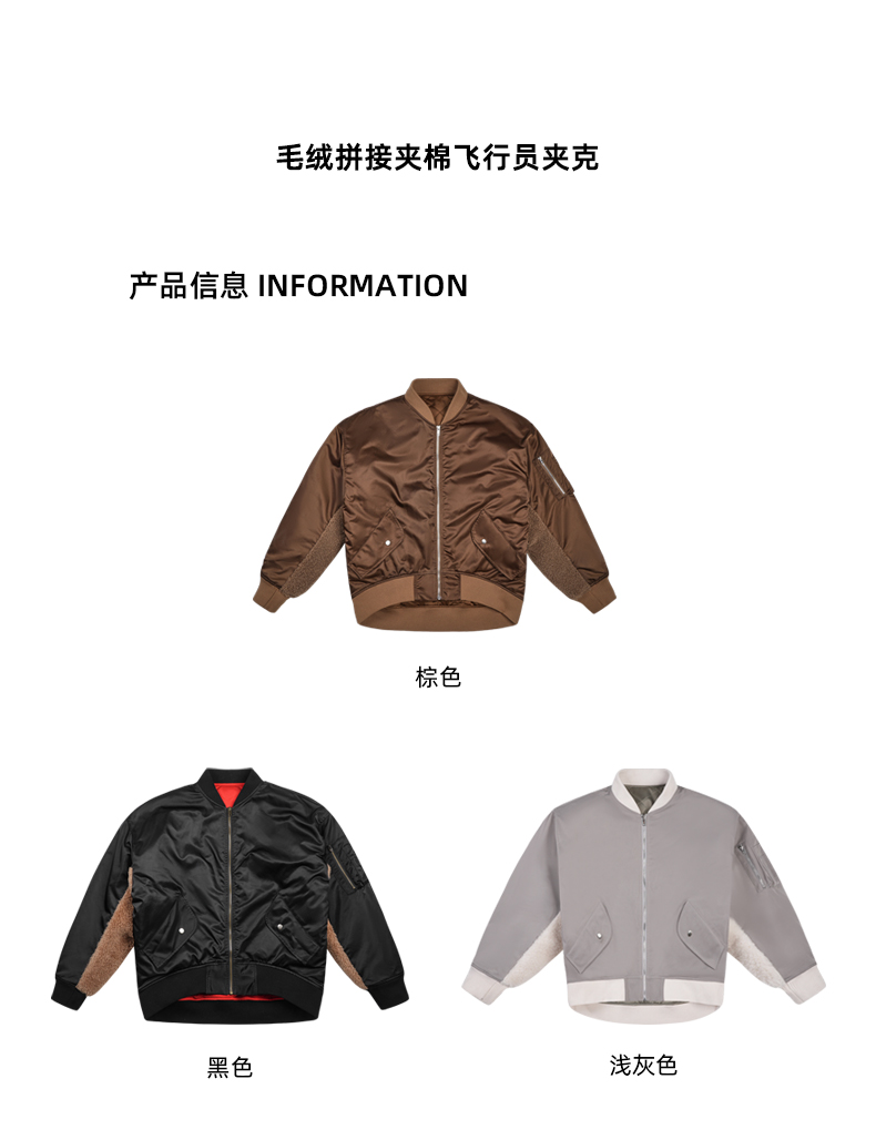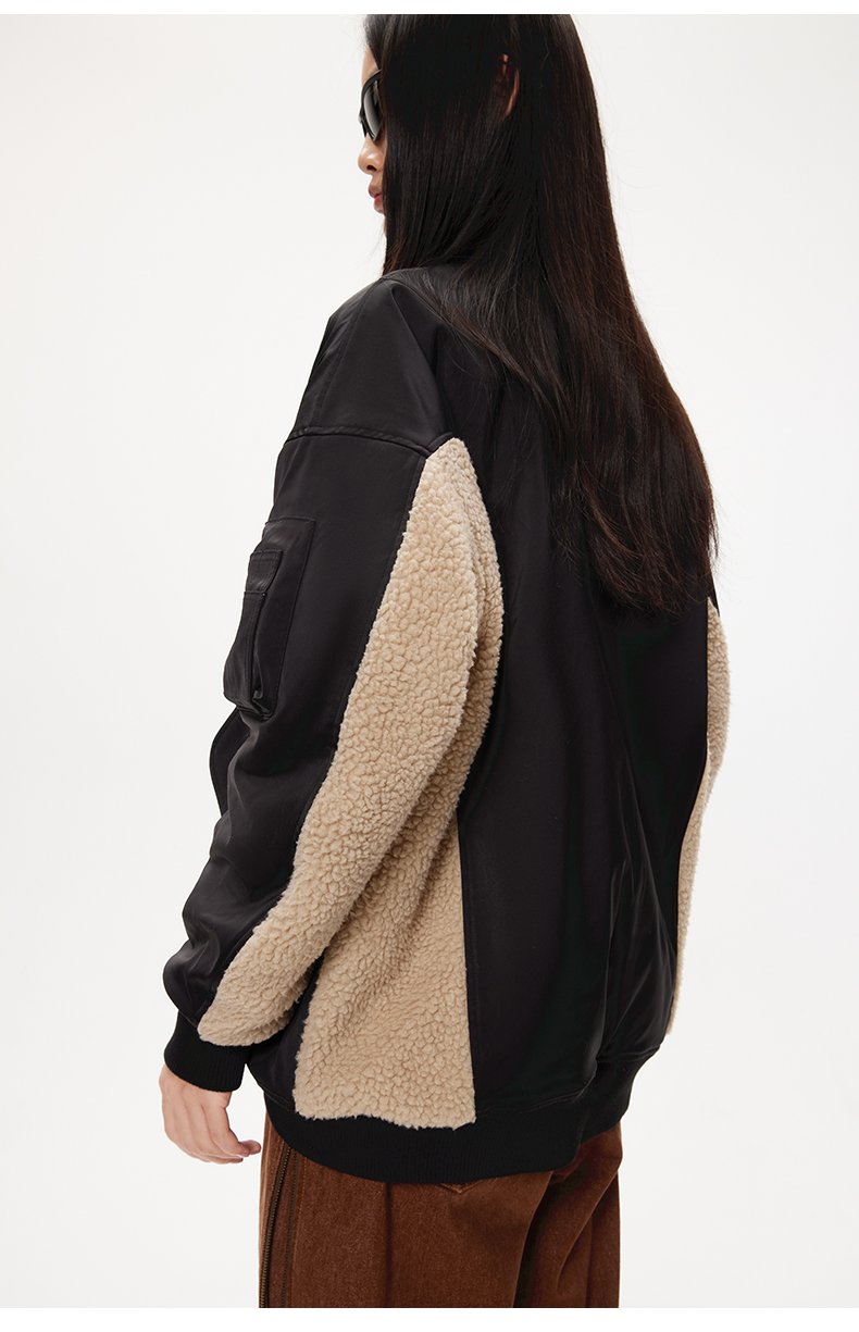 lost in echo设计师品牌美拉德风毛绒拼接宽松夹棉飞行员夹克外套