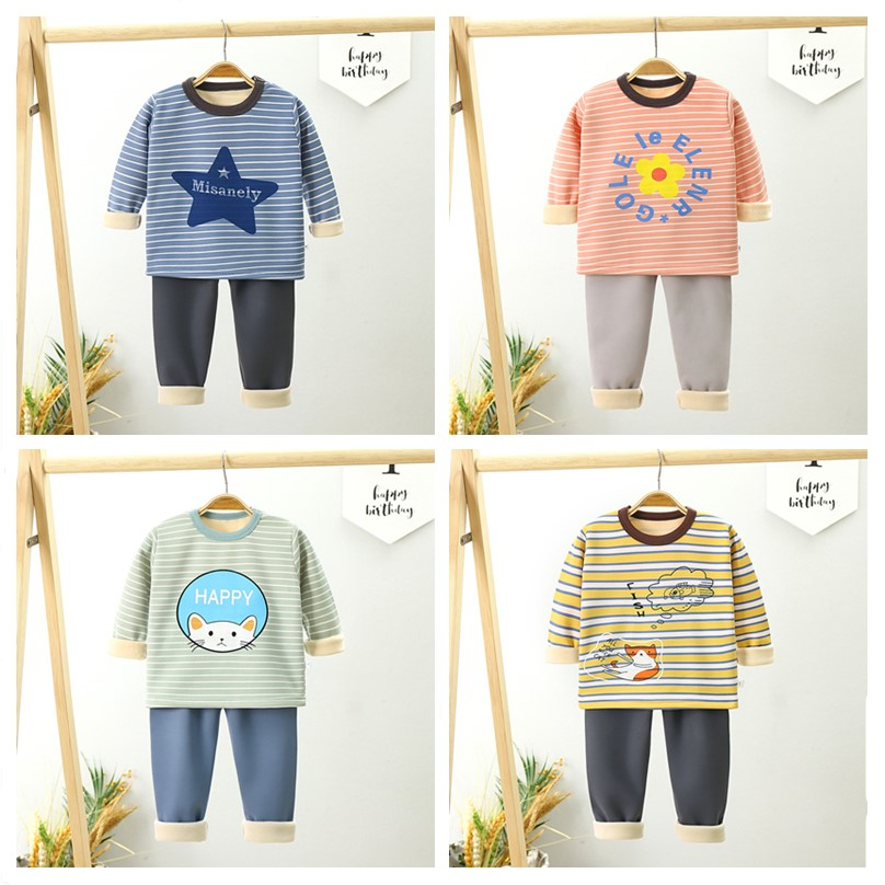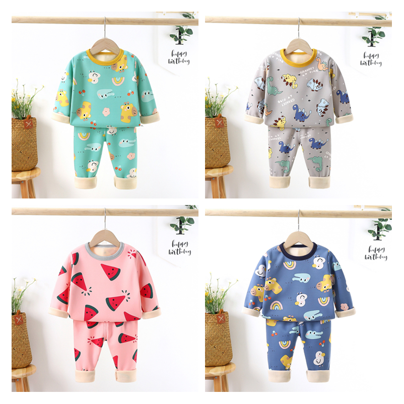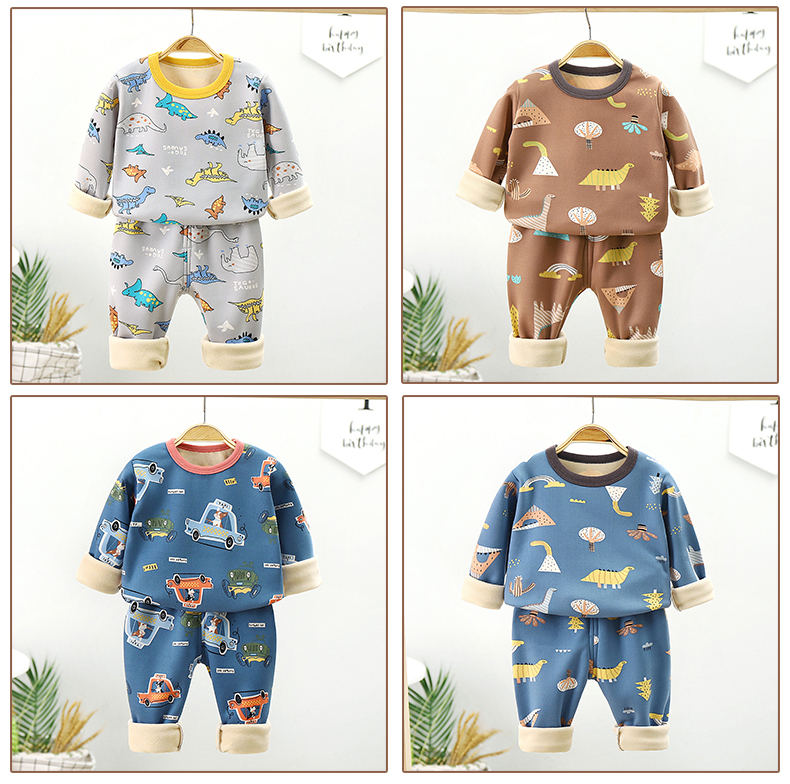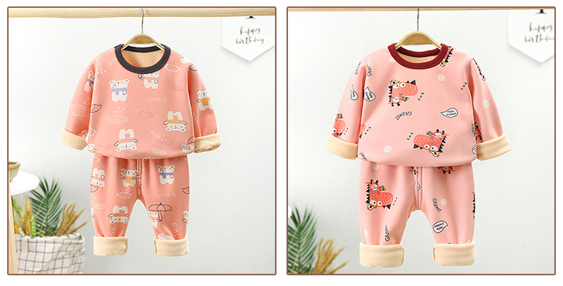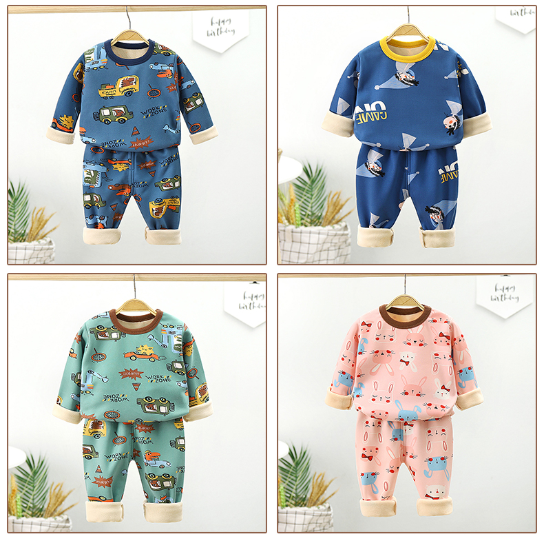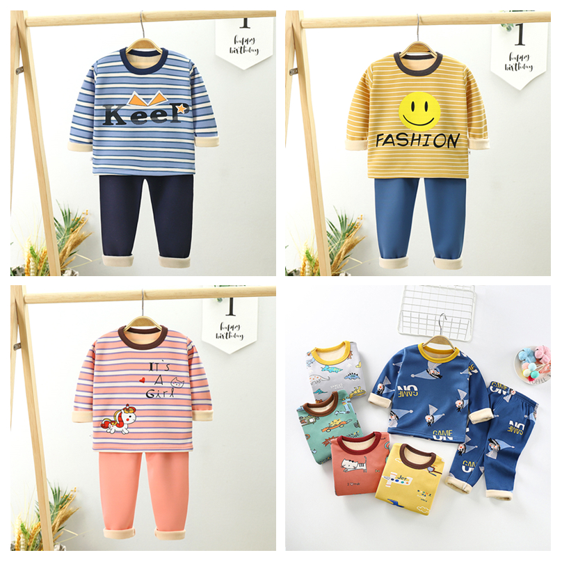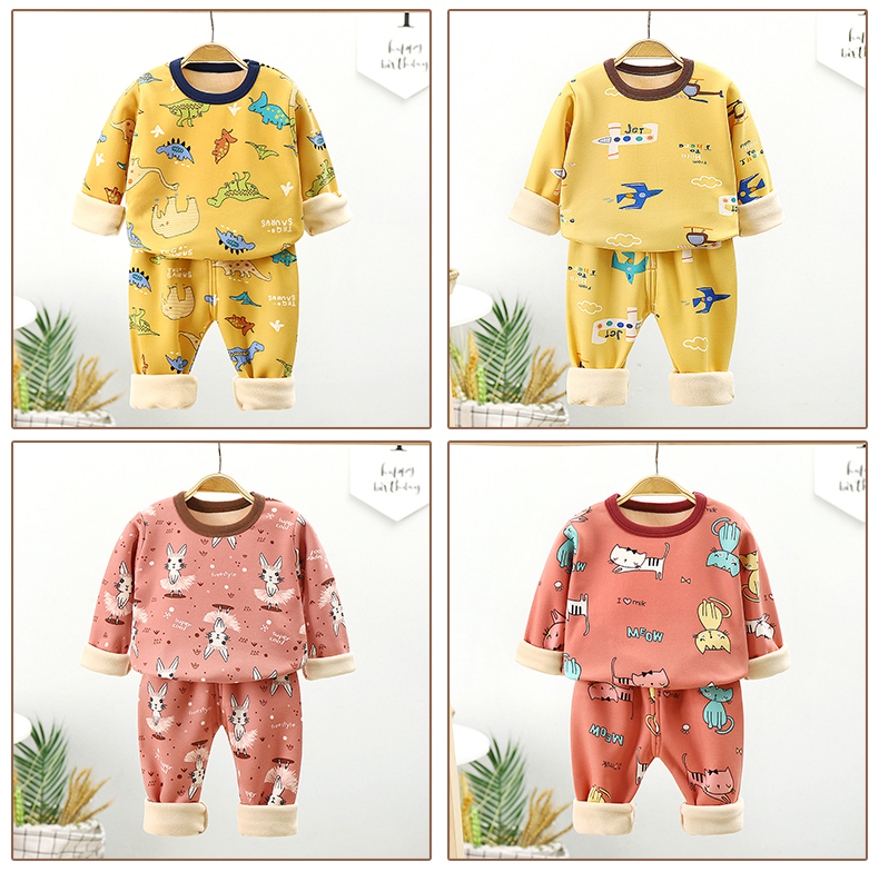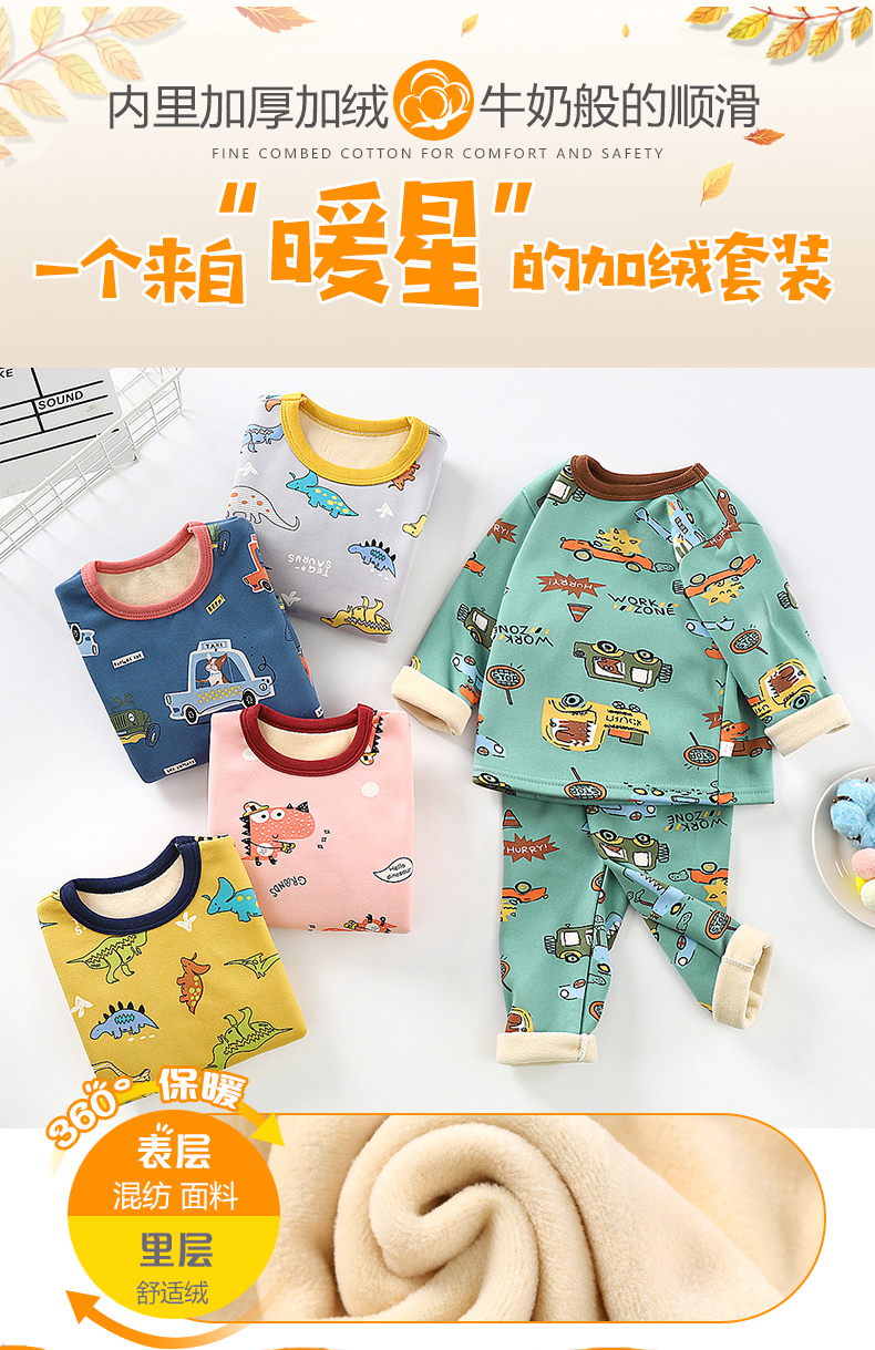 【暖huhu~超可爱套装】儿童加绒内衣套装,秋冬新款长袖秋衣秋裤加厚,保暖中小男女童家居装
