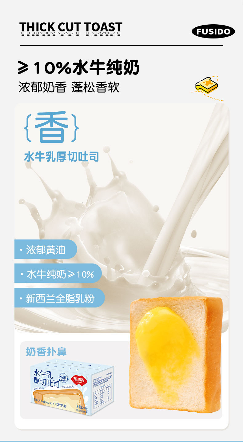 福事多 水牛乳厚切吐司面包400g*2箱