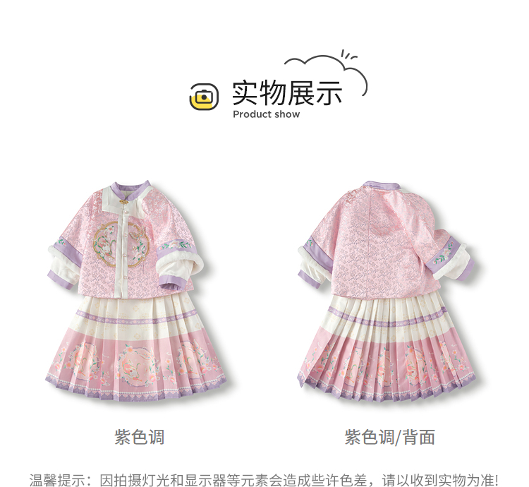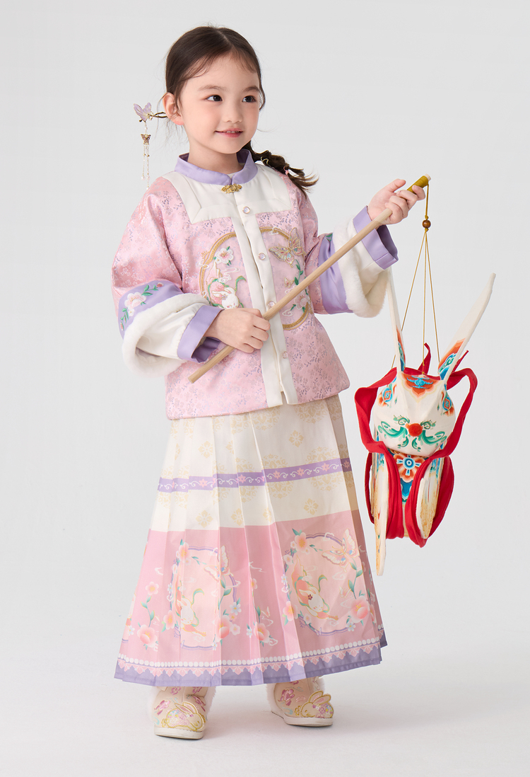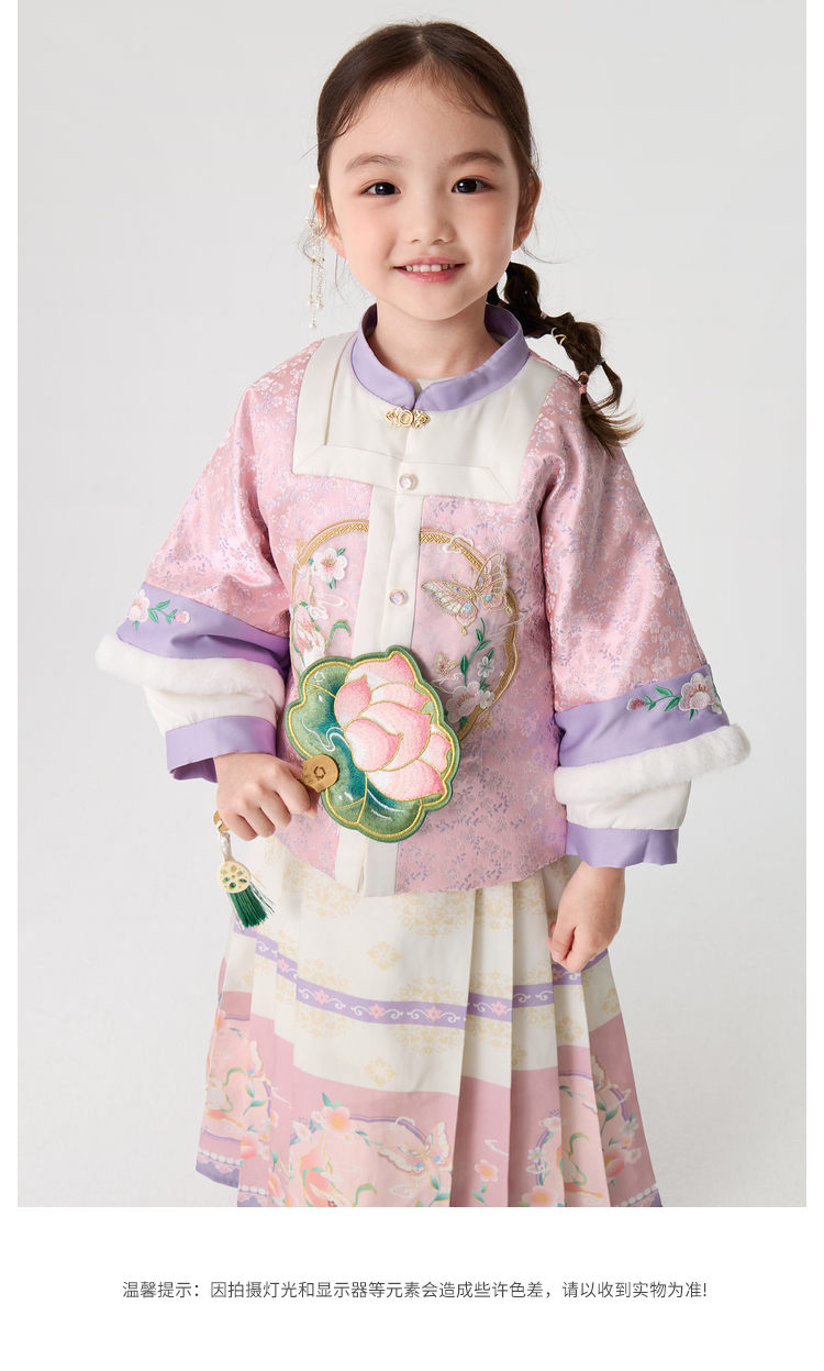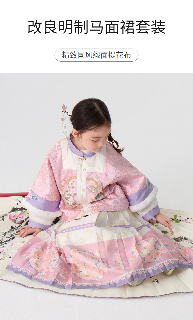 巴拉巴拉女童马面裙套装秋冬改良明制汉服国风两件套提花时尚洋气