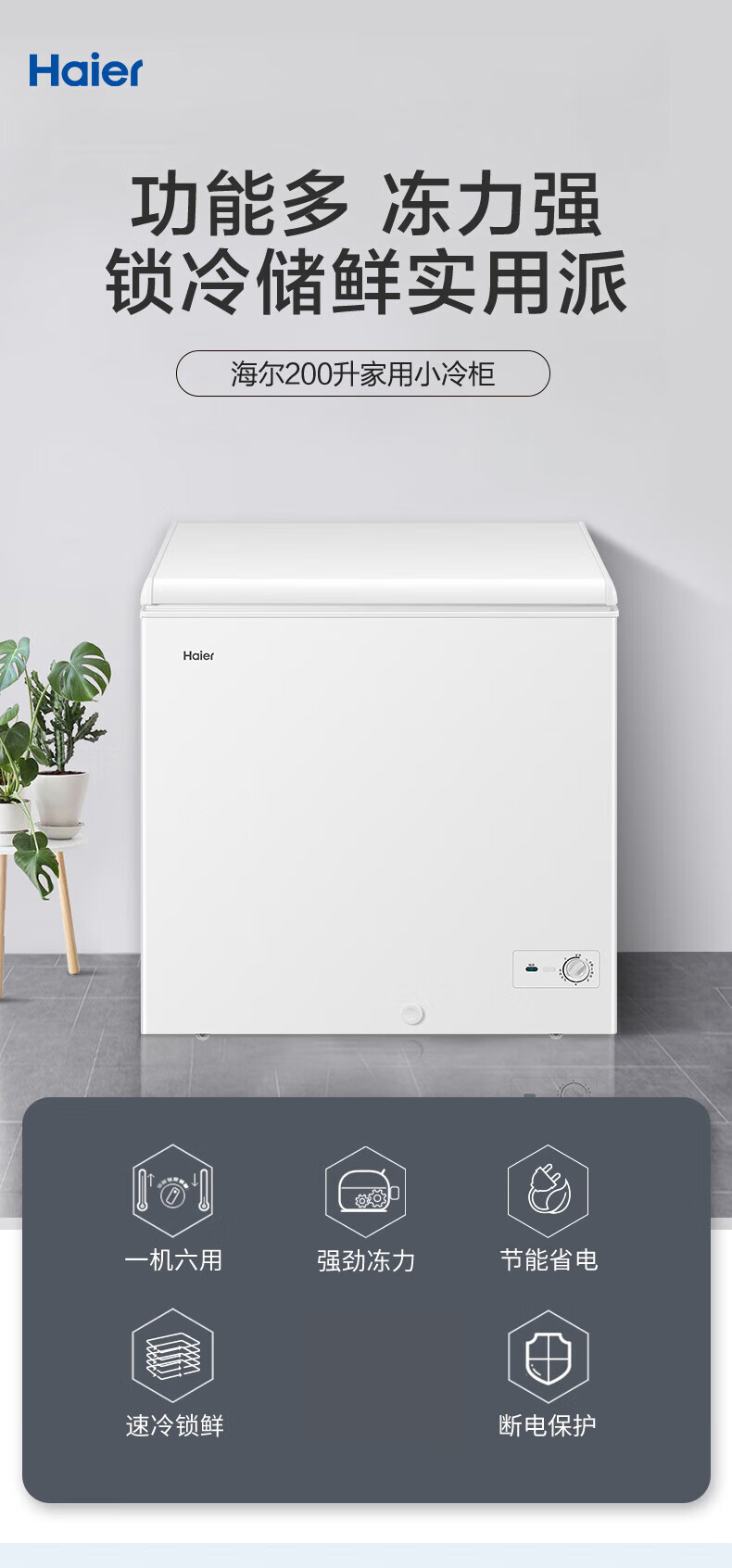 海尔低霜小冰柜100/200/300升家用商用冷藏柜冷冻柜两用冰柜小型租房 200升BC/BD-200GHT