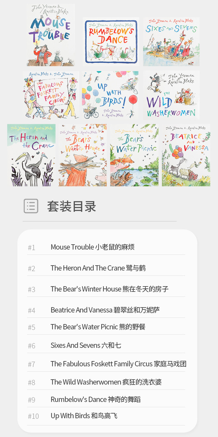 【值得收藏·4-12岁】 Quentin Blake Collection(10本)英国绘本名家昆汀-布莱克精选合集