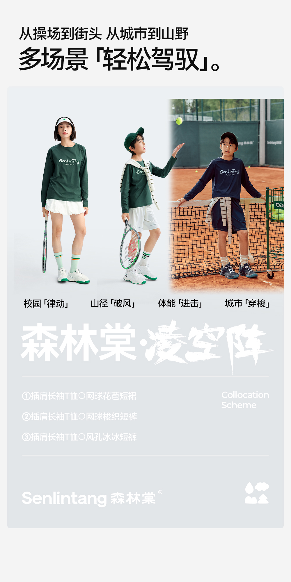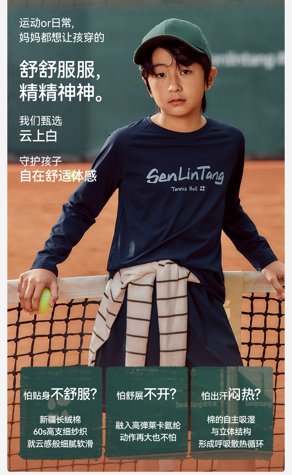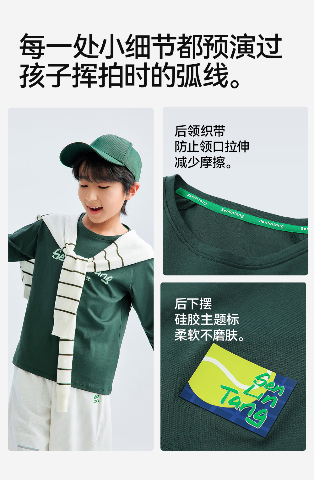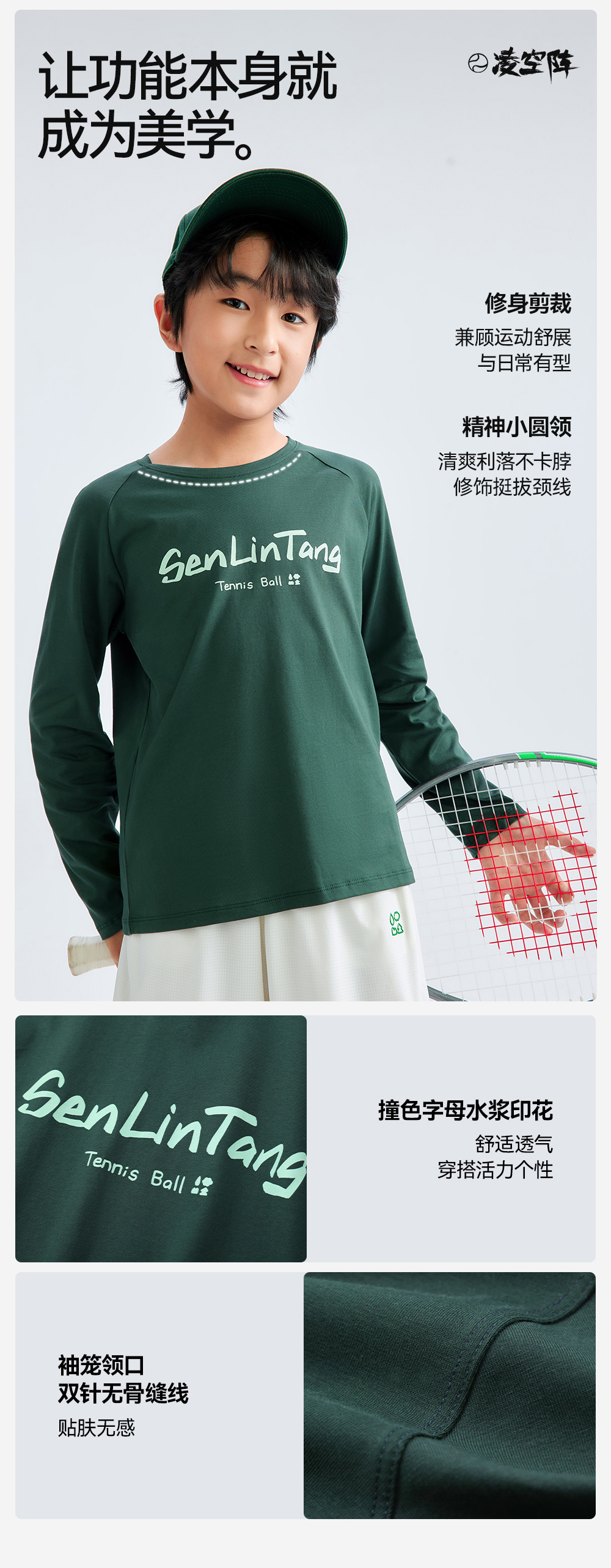 【插肩长袖T恤】森林棠26春棉感软弹透气吸湿儿童运动字母印花T恤20261311【HZ】