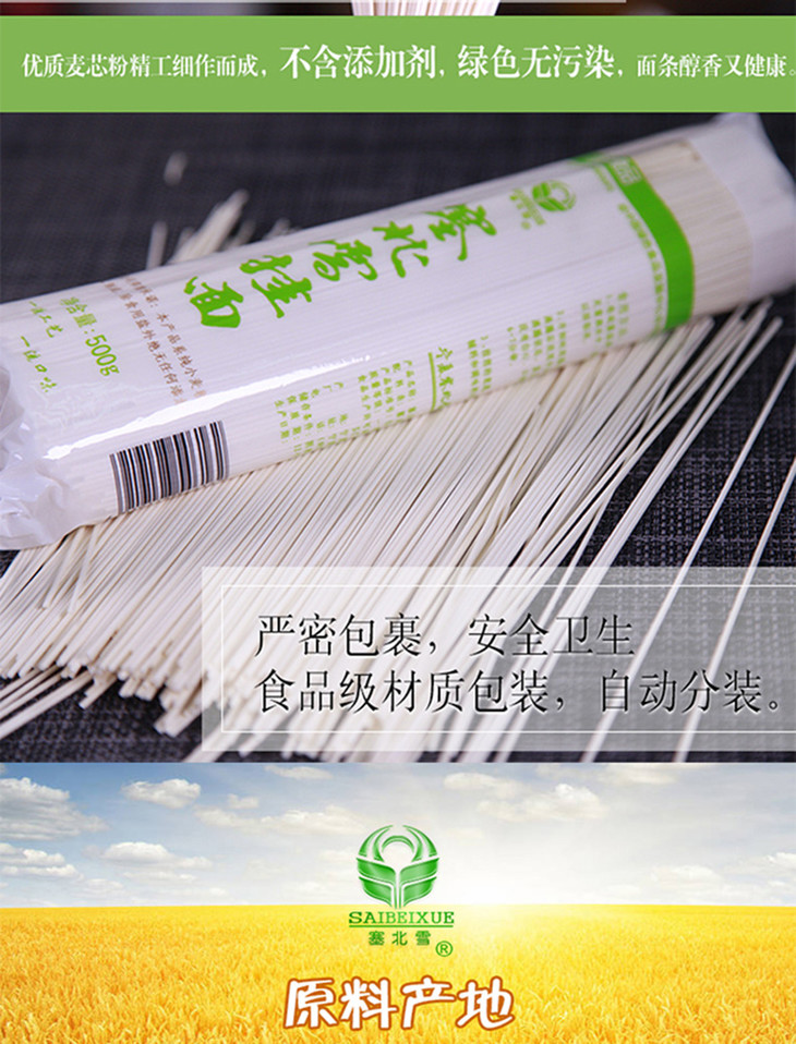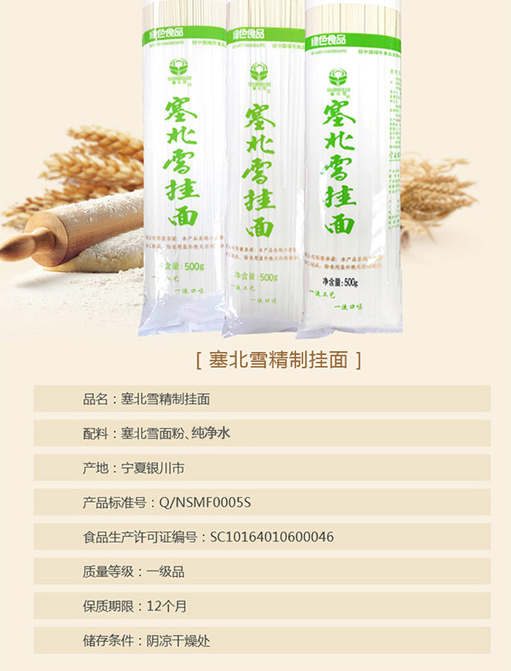 塞北雪挂面500g1.5圆柱无盐无添加4包装